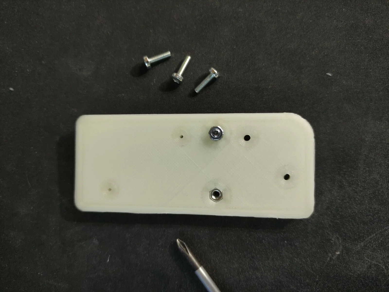 Bạn cần chuẩn bị 4 con ốc M3x10 và 2 đai ốc M3. LƯU Ý! Đừng dùng ốc quá dài, nếu không nó sẽ bị cạ vào bên trong máy in!