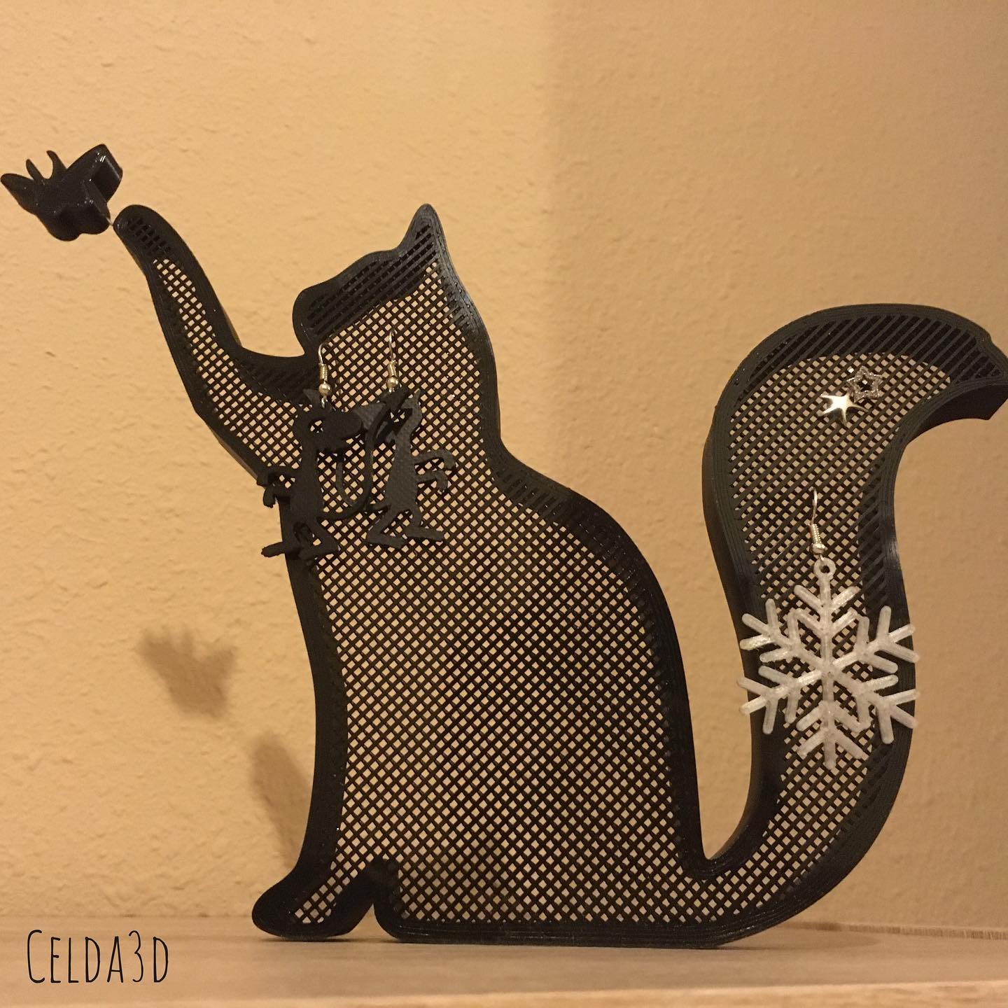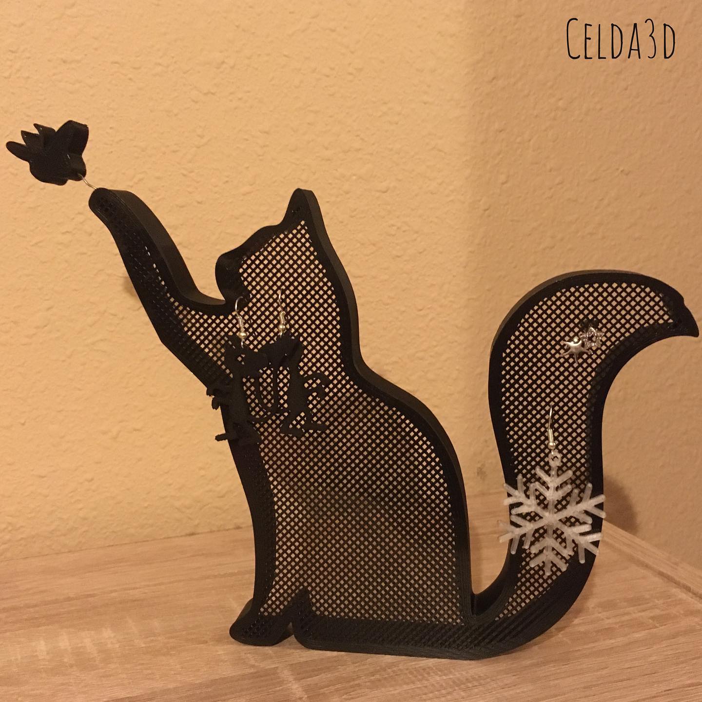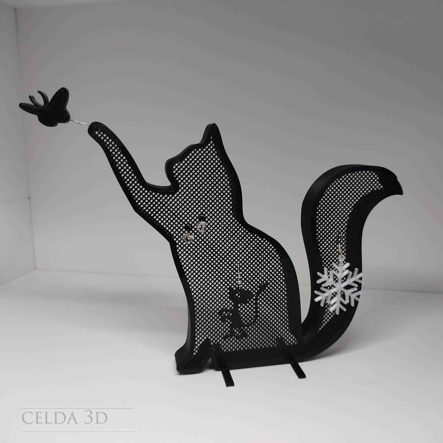 Một chiếc giá treo bông tai cực xinh xắn với tạo hình chú mèo đang bắt bướm. Đây là món quà tuyệt vời dành cho những ai yêu mèo. Thiết kế dễ in, yêu cầu lắp ráp đơn giản bằng kẹp giấy để kết nối các chi tiết.