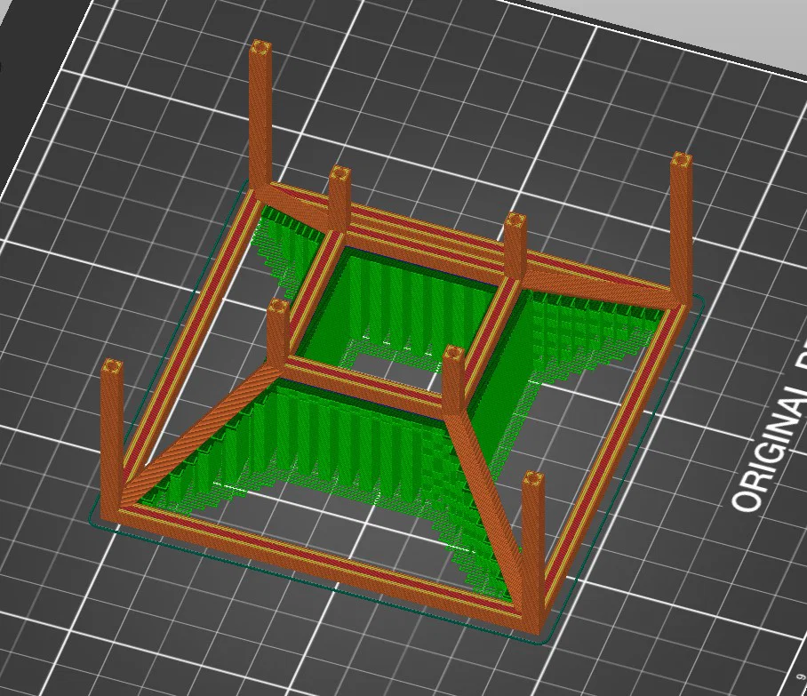 Cần sử dụng support ở các cạnh nghiêng và khối lập phương bên trong.