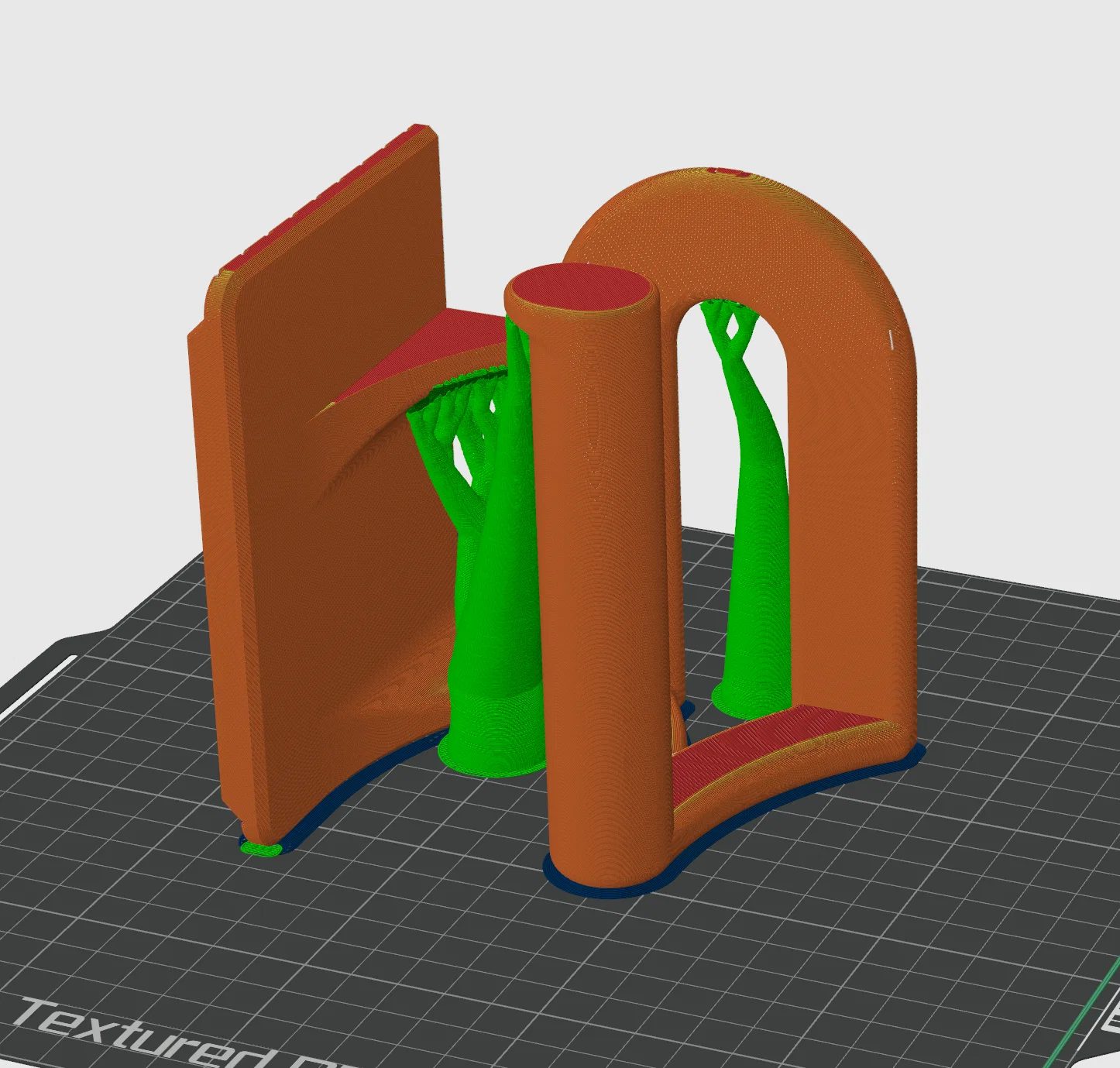 - Hỗ trợ (Support): Sử dụng cấu trúc support dạng tree (tree supports) để nâng đỡ các phần overhang, giúp tiết kiệm vật liệu mà vẫn giữ bề mặt in mịn màng.