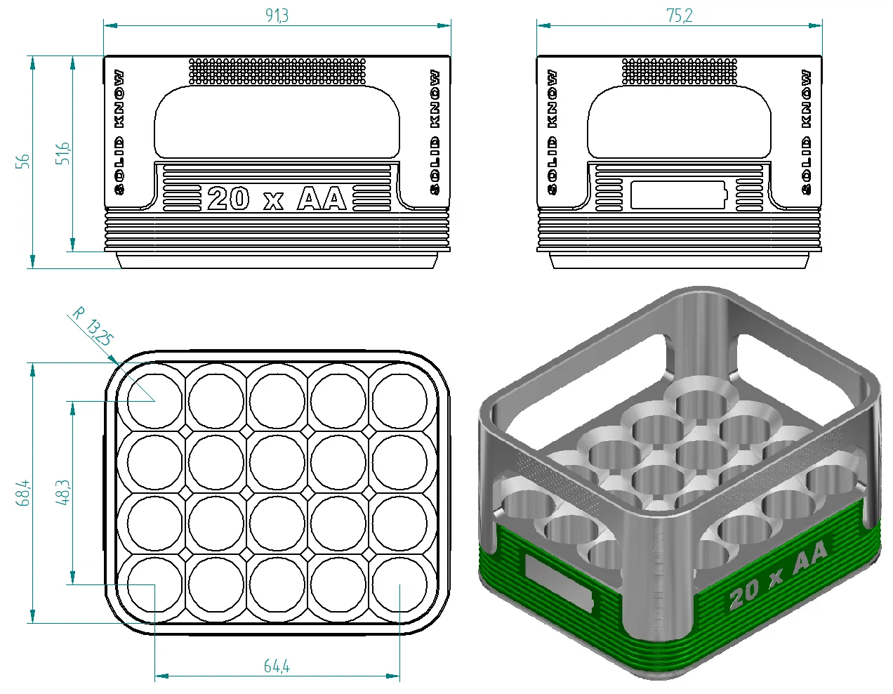Hộp đựng pin AA có thể xếp chồng (Thiết kế thùng bia Veltins)