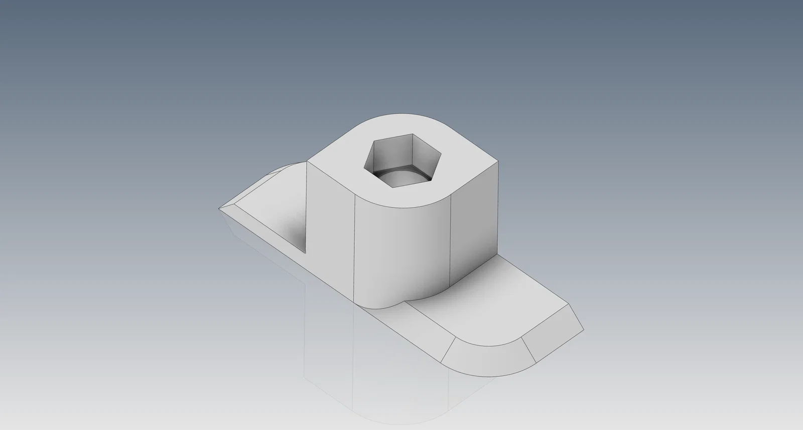 Đây là chi tiết kẹp cố định sử dụng ốc cấy (insert nut) M4 dành cho các tấm tiêu âm ốp tường, với khe hở và chiều cao 13mm. Phần lục giác ở mặt trước có kích thước 6mm, giúp anh em dễ dàng xoay và điều chỉnh kẹp vào phía sau các thanh gỗ. Phần này mình in bằng vật liệu PA6-GF, nhưng các loại nhựa khác cũng sẽ hoạt động tốt.