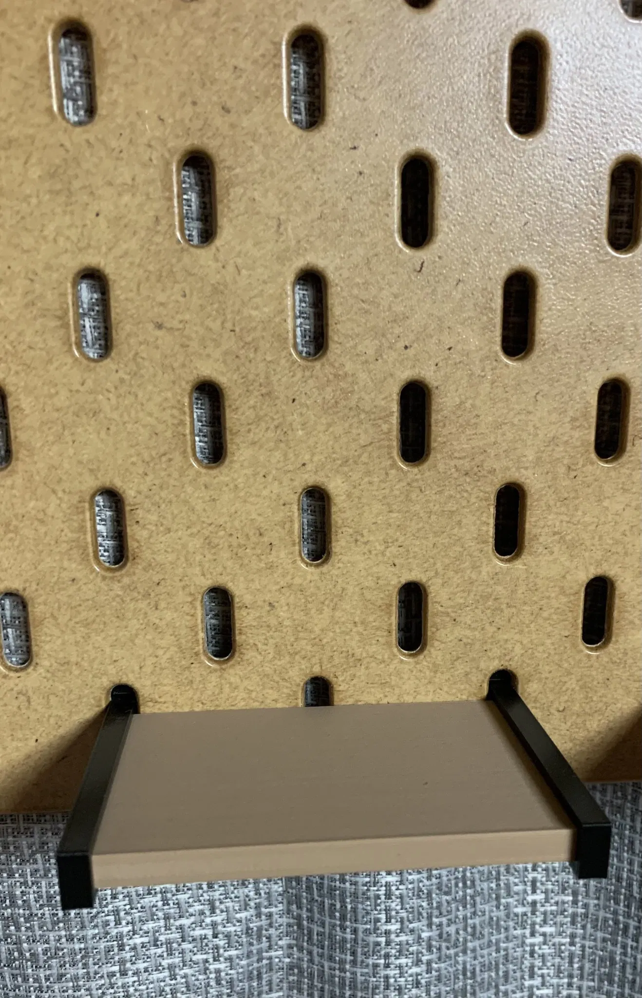 Kệ cho bảng Skadis. Được thiết kế thành 3 phần để bạn có thể dễ dàng sử dụng các màu khác nhau. Kệ ngắn trải dài qua 3 chấu và kệ dài trải dài qua 5 chấu. Hình ảnh cho thấy gỗ PLA nhuộm và PLA đen.