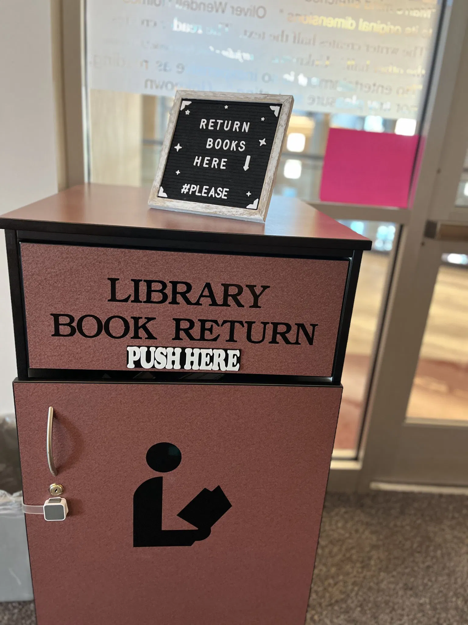 Biểu ngữ "Nhấn vào đây" cho hộp trả sách thư viện