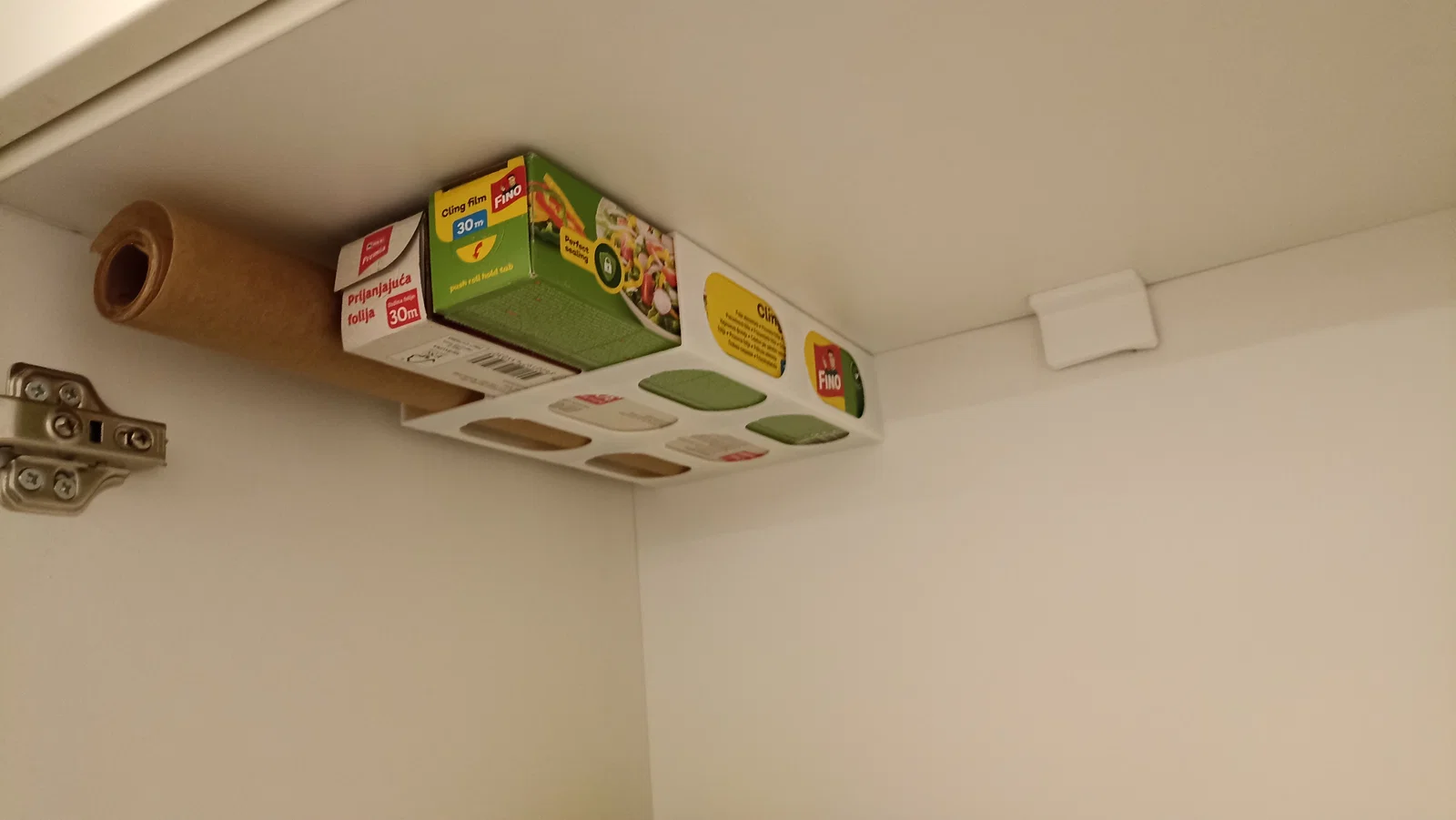 Mẫu giá treo đơn giản cho giấy bạc, màng bọc thực phẩm hoặc giấy nến, không cần support khi in. Kích thước trong 50x50x225mm, phù hợp với hầu hết các loại hộp phổ biến. Có sẵn tùy chọn giá đơn và giá đôi, dễ dàng lắp đặt bằng băng keo hai mặt.