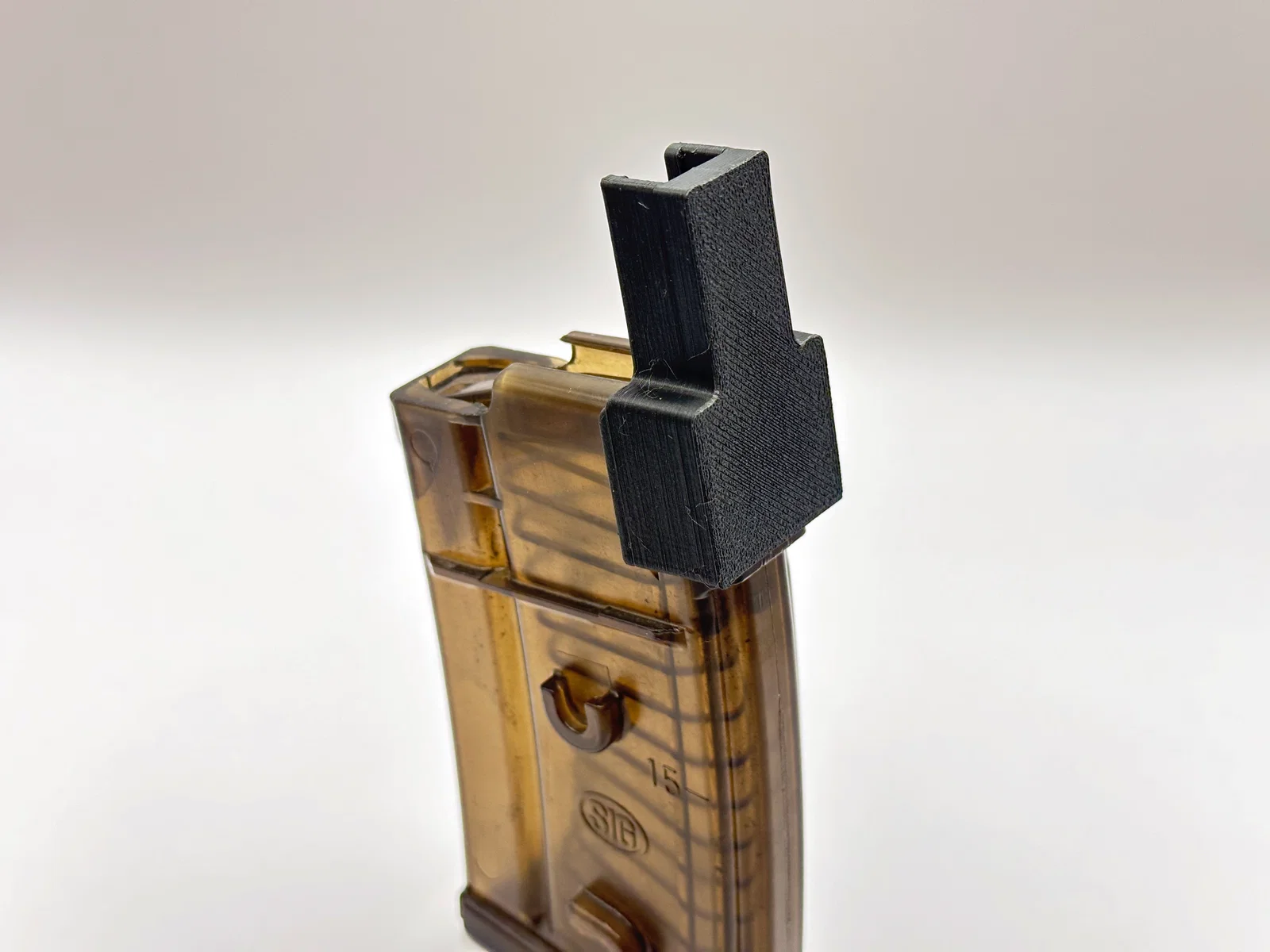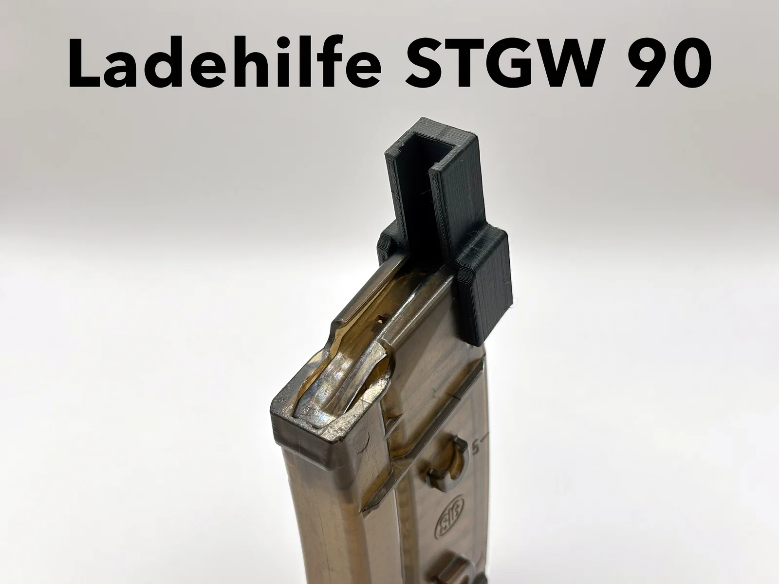 Mô hình 3D bản sao của dụng cụ hỗ trợ nạp đạn cho súng trường STGW 90. Phụ tùng này đã được tinh chỉnh lại hình dạng để việc in 3D đạt hiệu quả tốt nhất. Sản phẩm yêu cầu sử dụng support khi in để đảm bảo độ chính xác.