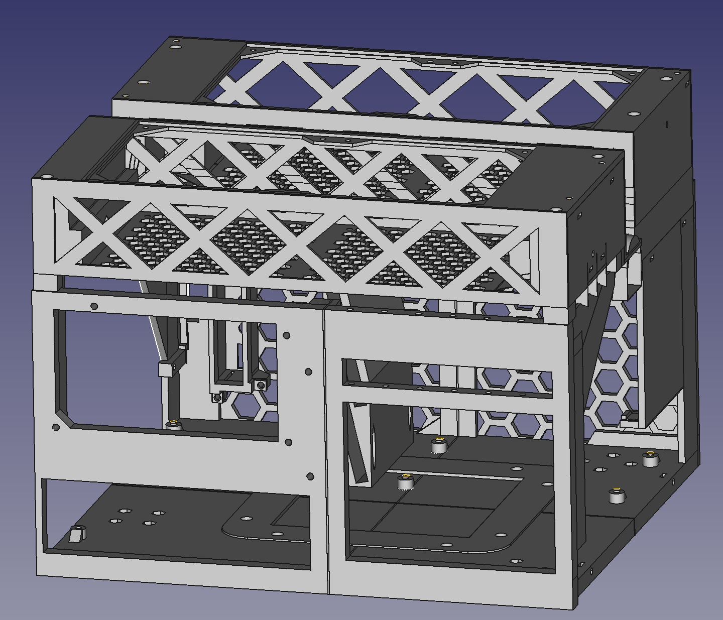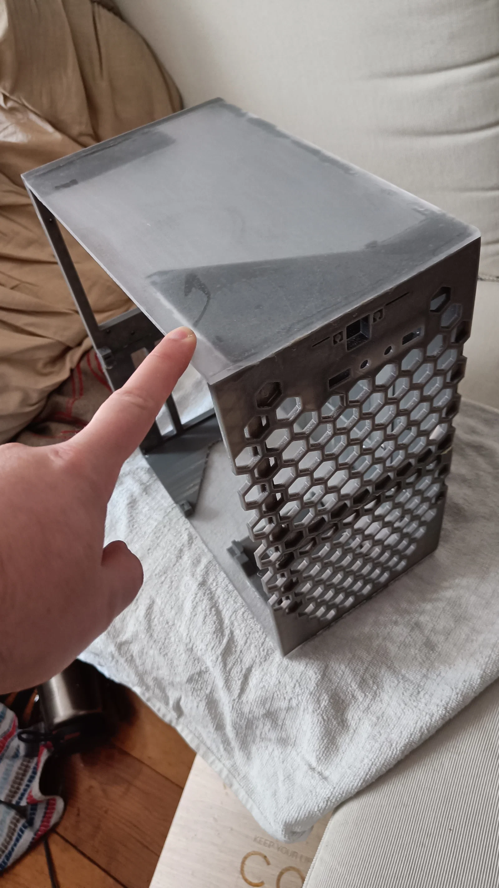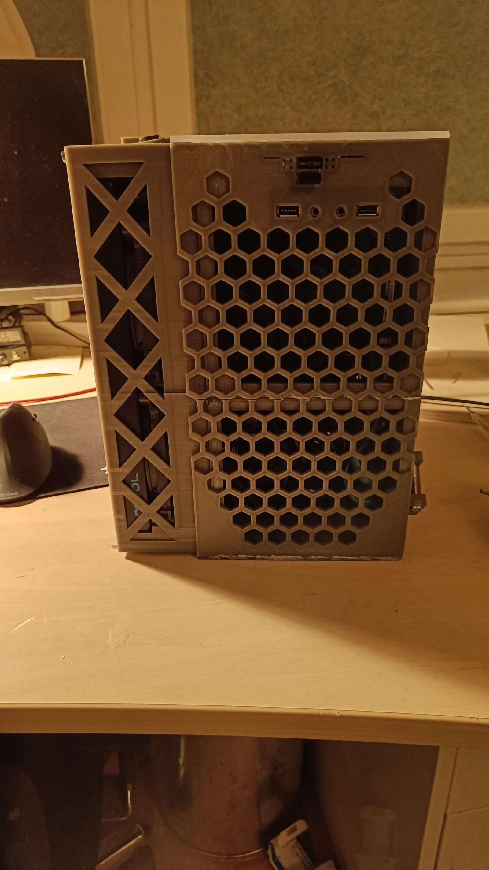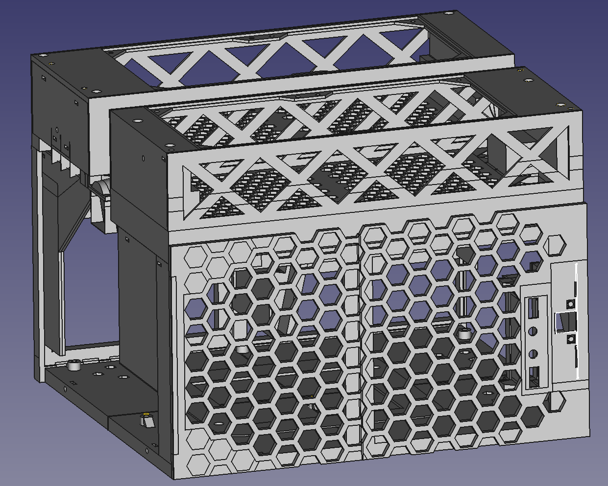 Lưu ý rằng tôi đã in một mẫu thử nghiệm với các file .stl đính kèm. Bạn có thể thấy thiết kế cần điều chỉnh cho phù hợp với máy in của mình. Tuy nhiên, nguyên mẫu này vẫn đang hoạt động tốt suốt 12 tháng qua. Một điều nữa: nếu bạn là người thích đi dây gọn gàng (cable management), chiếc case này sẽ là "trùm cuối" của bạn. Tôi không thiết kế sẵn các giải pháp để đi dây cho đẹp đâu, bạn sẽ phải nhồi nhét mọi thứ vào để vừa vặn thôi.