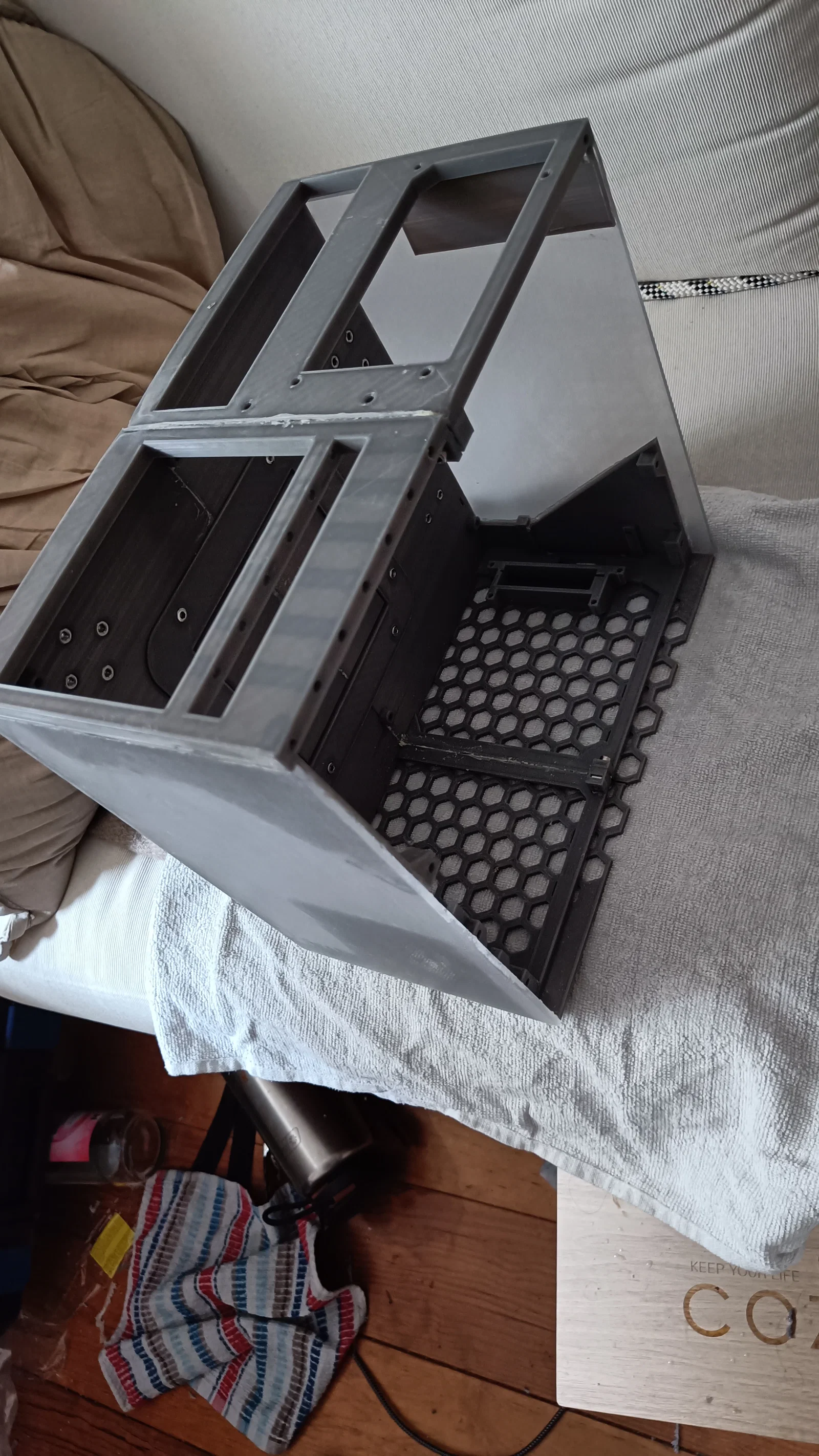 Danh sách linh kiện cần thiết (BOM) và yêu cầu phần cứng vui lòng tham khảo file đính kèm. Toàn bộ case này có thể in được bằng Prusa Mini+. Nhớ sấy khô nhựa in và cân chỉnh máy kỹ lưỡng! Nếu không sấy nhựa trước khi in, các cấu trúc lục giác ở giá đỡ tản nhiệt sẽ trở thành cơn ác mộng vì nhựa thừa (stringing). Đừng nói là tôi chưa cảnh báo bạn nhé.
