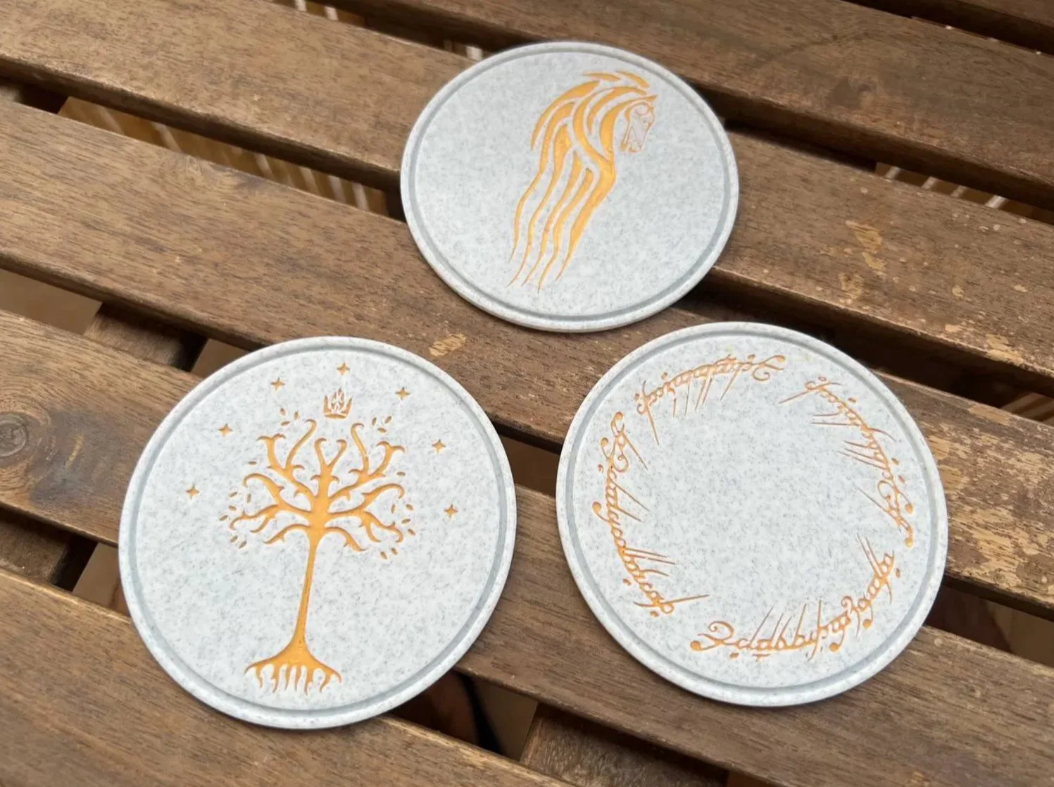 Nếu bạn là một người hâm mộ cuồng nhiệt của thế giới Trung Địa và muốn mang hơi thở của sử thi vào không gian sống của mình, thì mẫu đế lót ly (coaster) lấy cảm hứng từ Lord of the Rings này chính là món đồ bạn không thể bỏ qua. Những chiếc đế lót ly này không chỉ có công năng bảo vệ bề mặt bàn khỏi các vết ố do nước hay nhiệt độ từ ly tách gây ra, mà còn là một vật phẩm trang trí tinh tế đầy tính nghệ thuật cho bàn làm việc hoặc bàn trà của bạn.