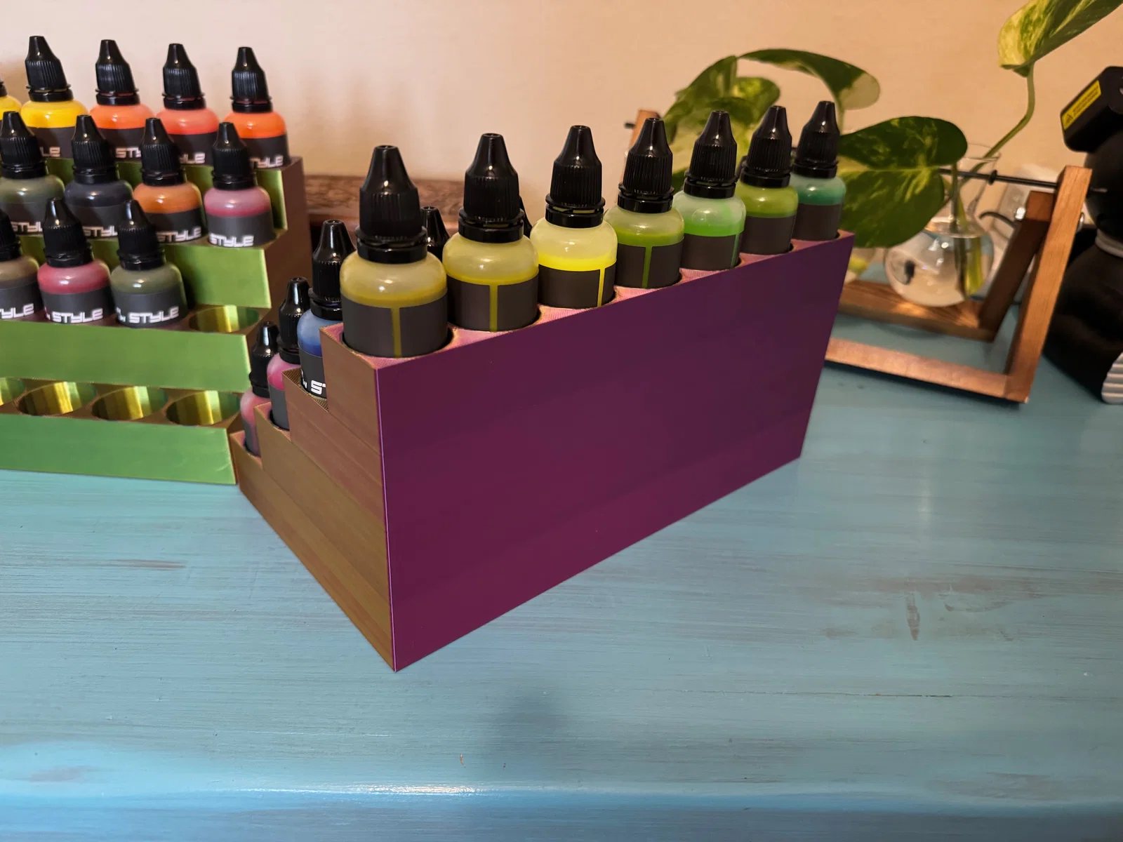 Kệ để sơn airbrush giúp trưng bày đầy đủ các màu sắc, đồng thời giữ cho góc làm việc luôn gọn gàng và ngăn nắp. Bạn có thể tự tùy chỉnh kích thước với trình tạo mẫu đi kèm.