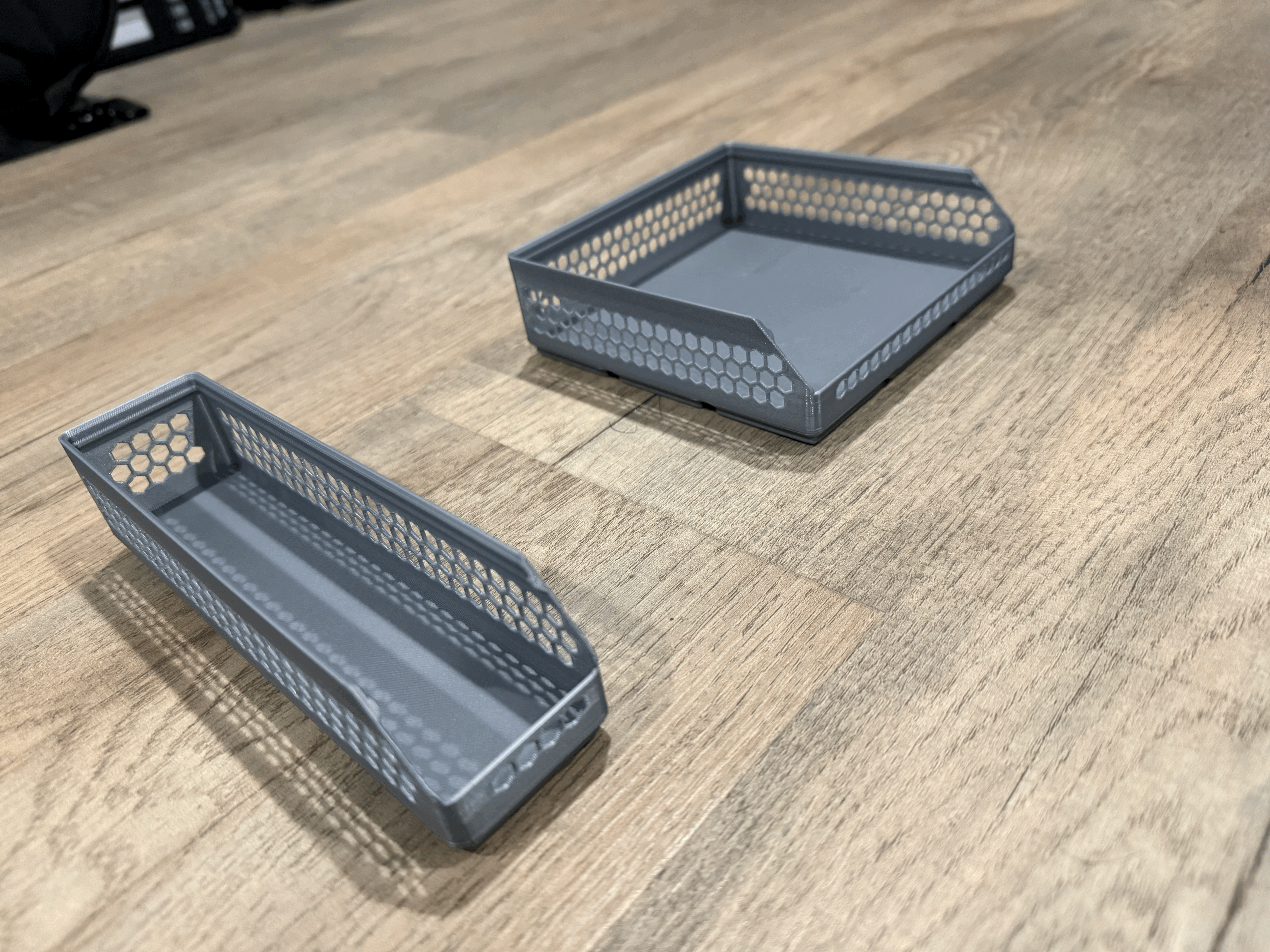 Mẫu khay Gridfinity in sẵn với thiết kế thành hình lục giác độc đáo và mặt trước được cắt vát tiện lợi. Tệp bao gồm hốc nam châm và đế cắt nửa để tối ưu hóa không gian trên các tấm nền Gridfinity của bạn.