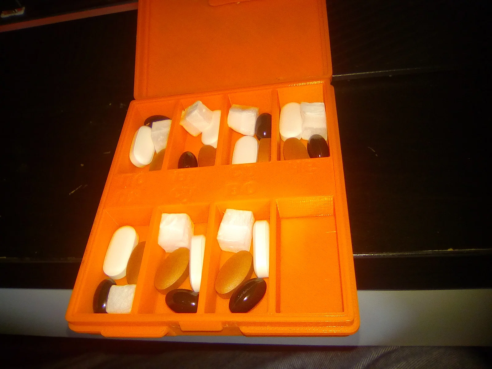 Là một fan cứng lâu năm của dòng game S.T.A.L.K.E.R. và Metro, mình đã mê ngay mẫu “” của tác giả Jakub Kočí ngay khi vừa nhìn thấy. Mình đã in thử vài cái bằng nhiều chất liệu khác nhau, lấy một cái đựng miếng vá và vài món linh tinh làm bộ sơ cứu EDC, tặng bớt vài cái, rồi lại cứ suy nghĩ xem phải làm gì với đám hộp còn lại đang nằm lăn lóc trong phòng… Thế là mình thiết kế thêm cái khung đơn giản này để biến chúng thành hộp chia thuốc hàng tuần. Mình có đánh dấu các ngày trong tuần bằng tiếng Anh ở một mặt và tiếng Nga ở mặt kia (để giữ đúng phong cách Liên Xô), bạn thích dùng mặt nào thì chỉ cần xoay mặt đó lên rồi nhấn vào trong hộp medkit là xong. Cái của mình in bằng nhựa PLA, lắp vừa khít với hộp AI-2 cũng in bằng PLA. Mẫu này in ngon lành mà không cần support luôn nhé. Vì chia bảy ngăn bằng nhau trong một cái hộp vuông khá khó nên mình có dư ra một ngăn không đánh dấu. Mình dùng cái này để đựng collagen và vitamin, nhưng bạn cũng có thể đựng được nhiều loại thuốc khác. Nhược điểm duy nhất là các ngăn không có nắp đậy riêng biệt và khi mở hộp gốc phải hơi cẩn thận kẻo thuốc đổ tung tóe - chắc sau này mình sẽ mod thêm phần này sau.