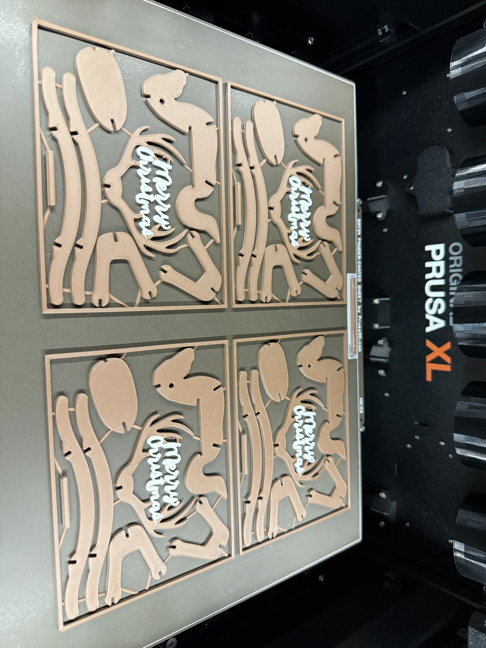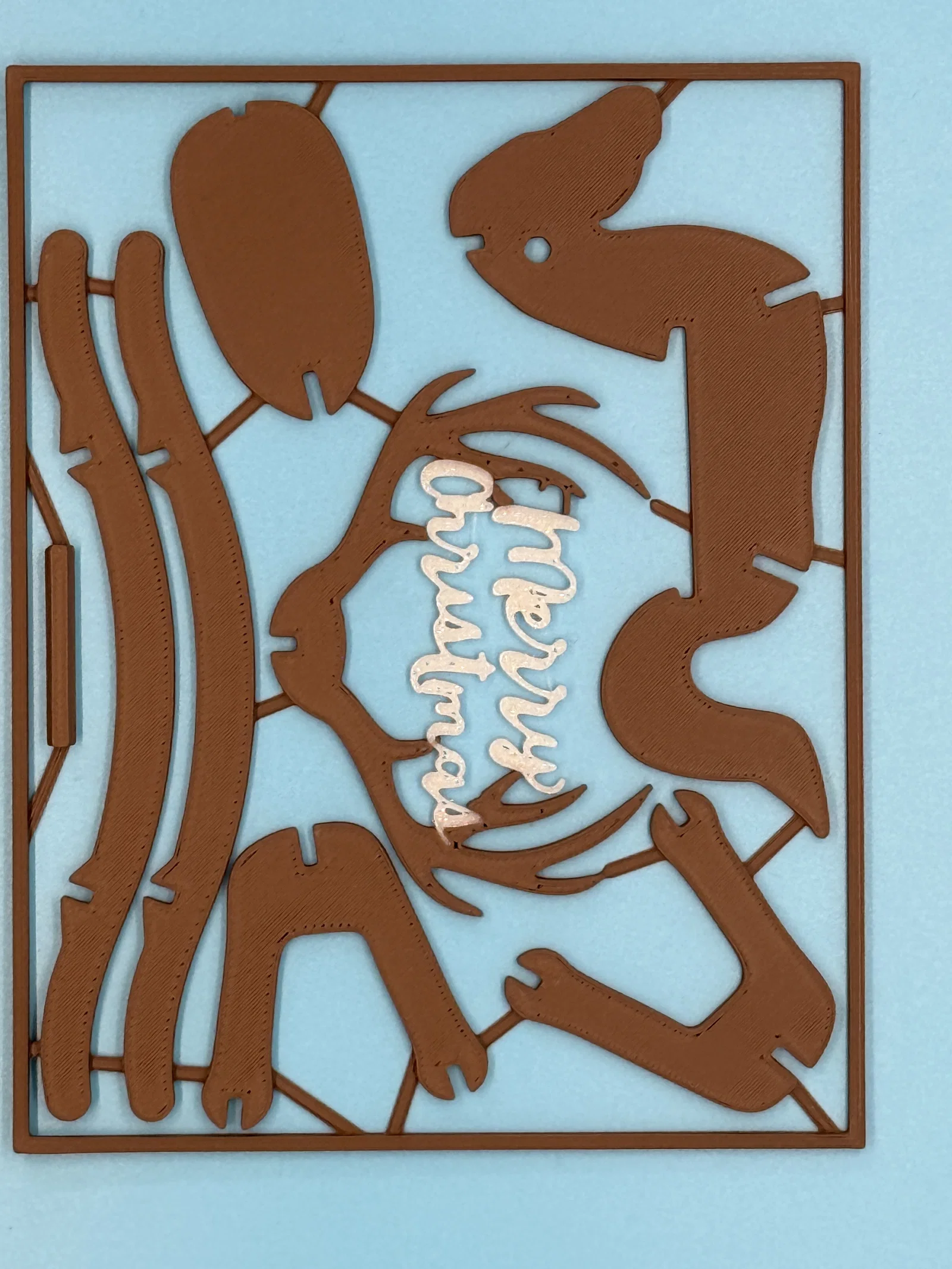 Vợ mình đã có truyền thống gửi quà Giáng sinh tự tay làm cho bạn bè và đồng nghiệp nhiều năm nay. Khi tìm ý tưởng mới cho năm nay, mình rất thích bộ xmas kit card của @joris nhưng lại muốn in dòng chữ “Merry Christmas” bằng màu khác. Mình đã thử dùng công cụ tô màu của Prusaslicer nhưng kết quả thì… ừm, “chưa được tối ưu lắm”. Thế là mình thiết kế lại tấm thẻ trong Fusion và tách phần lời chúc thành các khối riêng biệt để có thể gán cho các đầu đùn khác nhau trong Prusaslicer. Nhân tiện, mình cũng chỉnh lại cho lỗ xỏ tay cầm to hơn một chút vì trước đó mình thấy không thể lắp vừa, dù đã chỉnh bù trừ elephant foot.