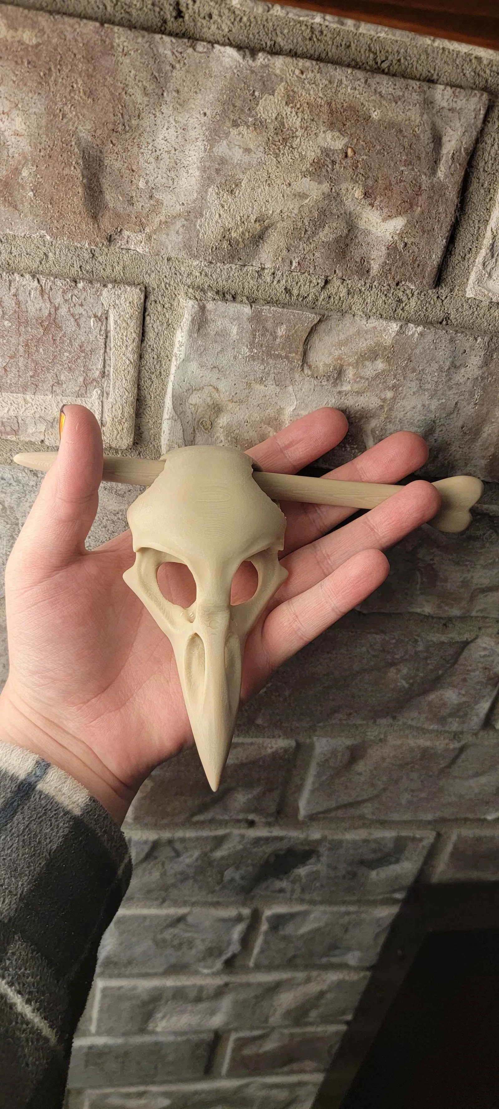 Mẫu trâm cài tóc hình đầu lâu quạ này được thiết kế để xỏ cây trâm qua phần sau hộp sọ thay vì qua hốc mắt, vì mình thấy kiểu đó trông đẹp hơn. Mình làm mẫu này vì mấy mẫu trâm đầu lâu chim khác trông hơi bị hoạt hình quá, mặc dù phần trâm cài của họ rất tốt nên bạn cứ tận dụng cái đó để kết hợp với mẫu này nhé.