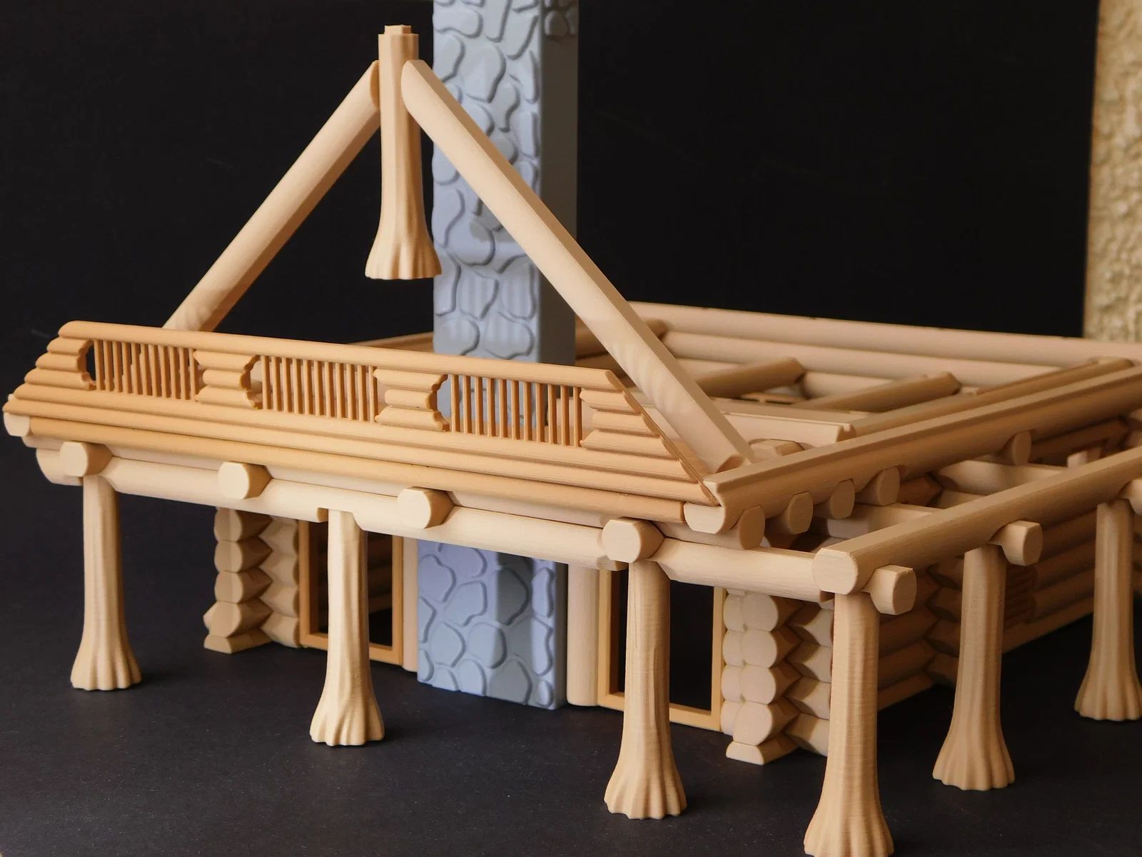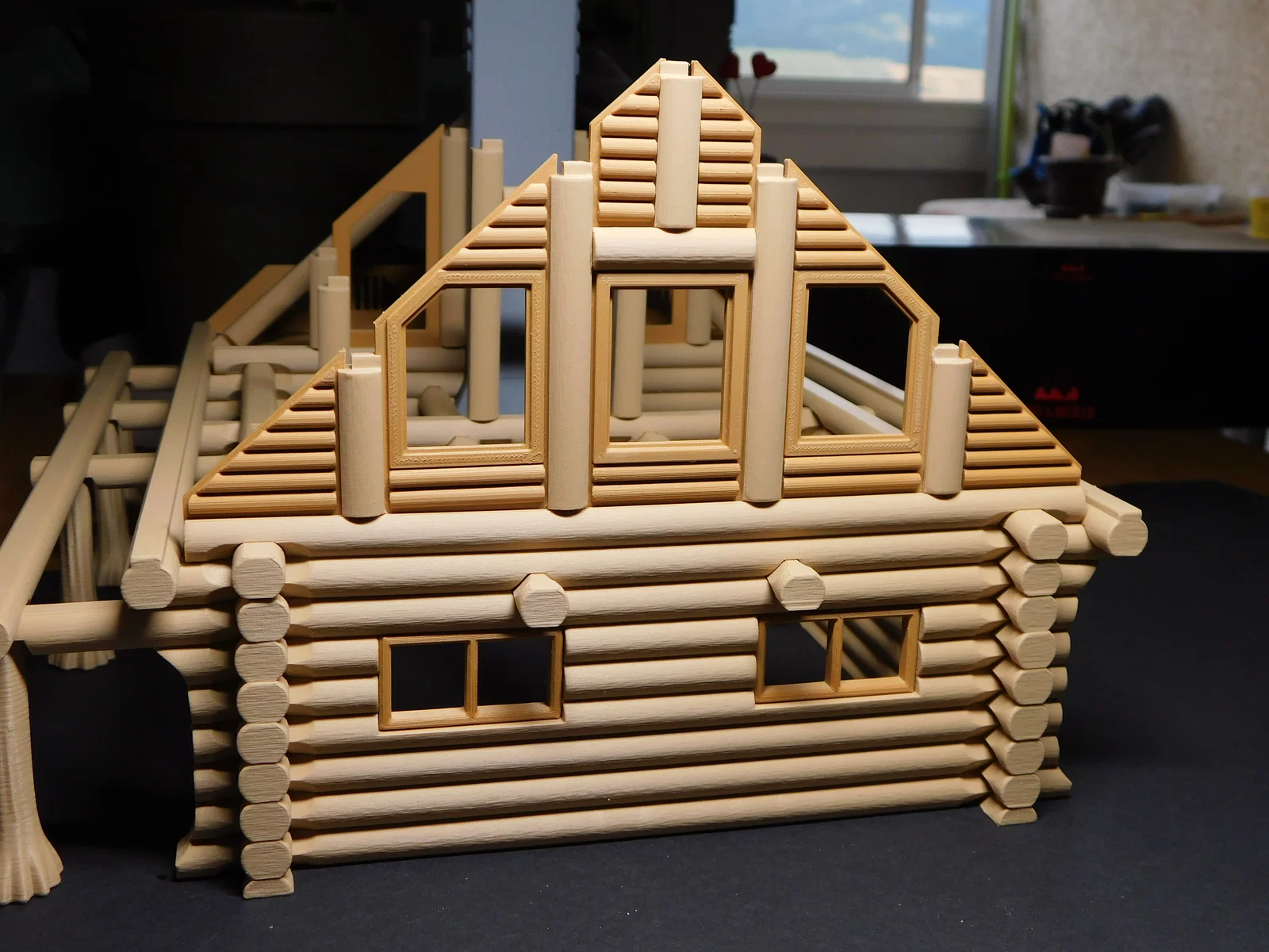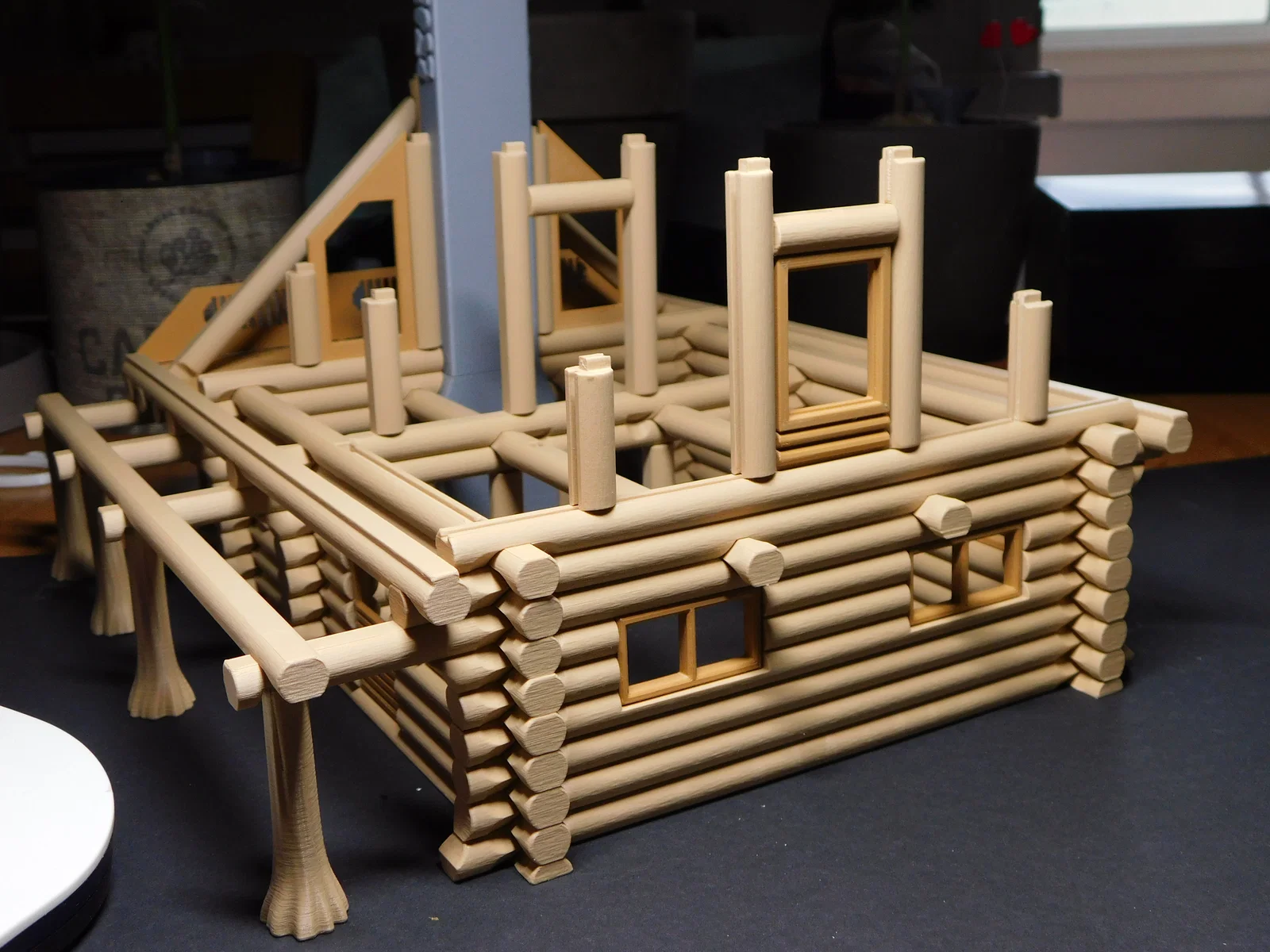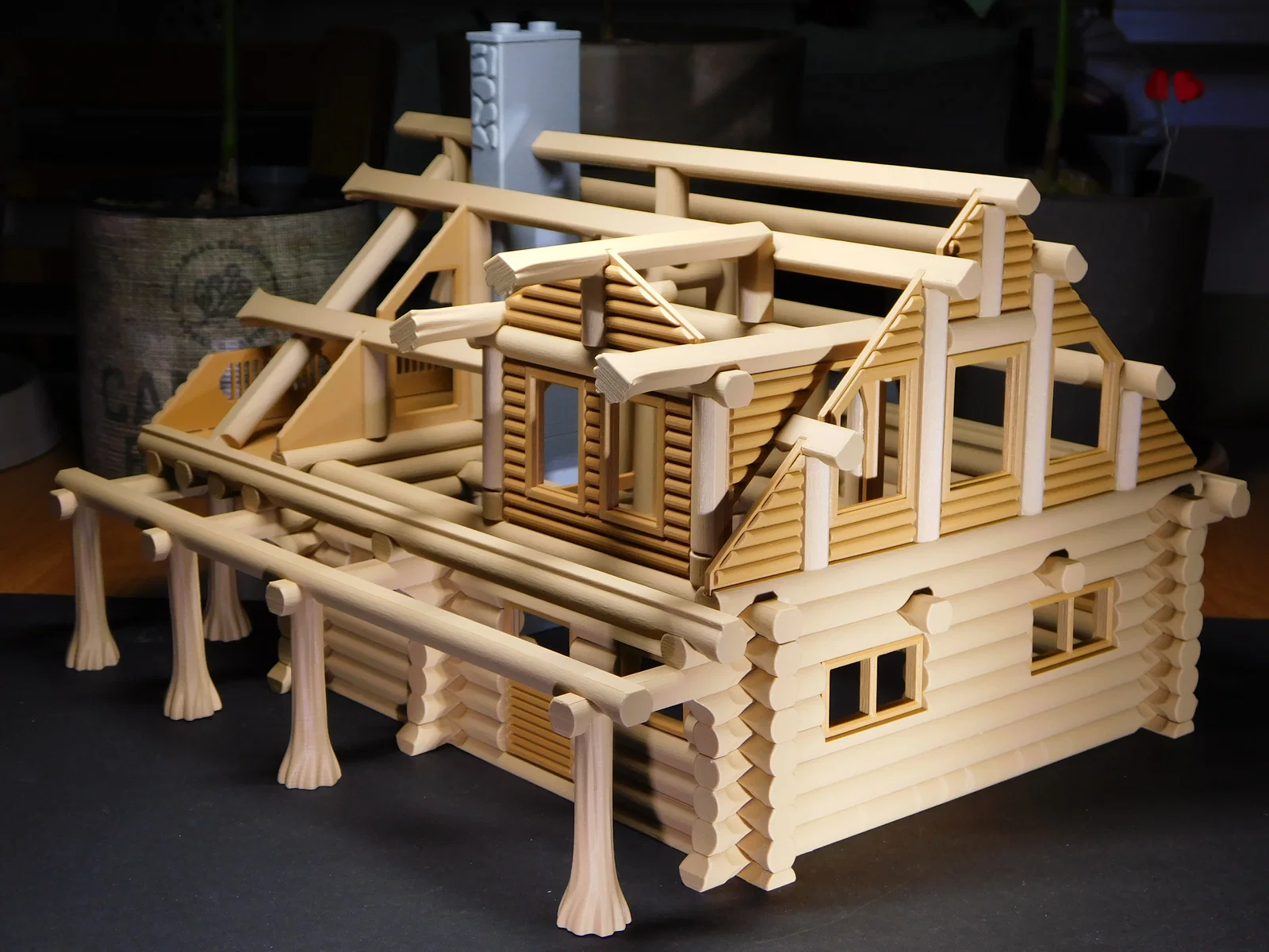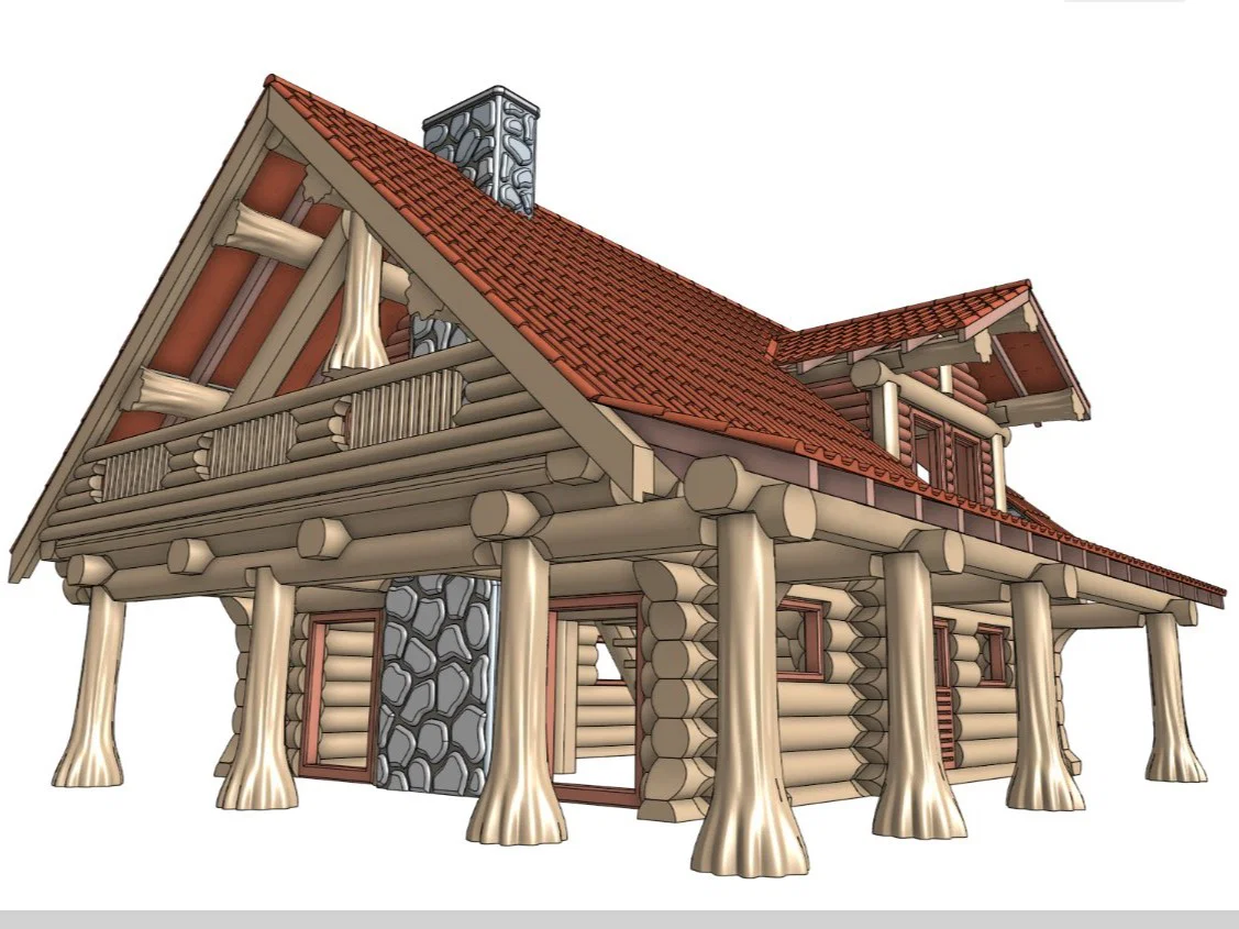 Sau khi khá thành công với mẫu nhà gỗ dạng kit trong một cuộc thi, mình đã tạo ra một mẫu nhà gỗ lớn hơn và phức tạp hơn để gửi tới các bạn. Mình rất thích công việc này, như đã từng chia sẻ, mình vốn mê xem quy trình xây dựng những căn nhà gỗ từ Pioneer Log Homes trên tivi. Mình đã cố gắng tạo ra vẻ ngoài giống gỗ thật nhất có thể.