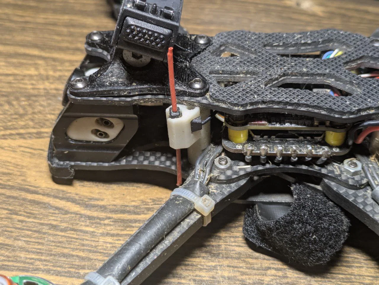 - Kiểm tra: Sau khi lắp xong, hãy đảm bảo ăng-ten không chạm vào sợi carbon của khung để tránh gây nhiễu sóng hoặc làm hư hại ăng-ten.