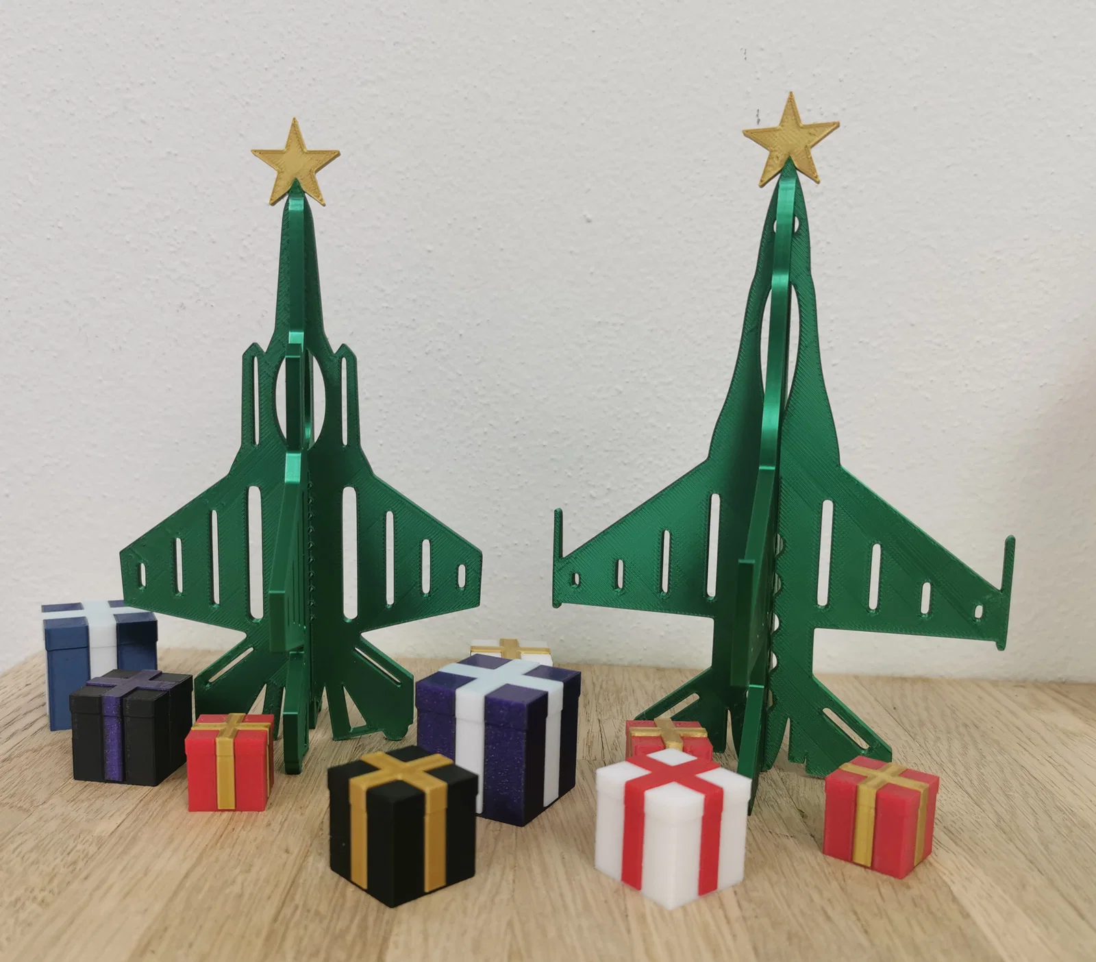 Mô hình cây thông Noel được biến tấu đầy ấn tượng với phong cách Không quân. Đây là thiết kế dành riêng cho Không quân Đan Mạch, sử dụng các chi tiết máy bay chiến đấu F-16 và F-35, in bằng nhựa silk PLA đẹp mắt cho không khí Giáng sinh.