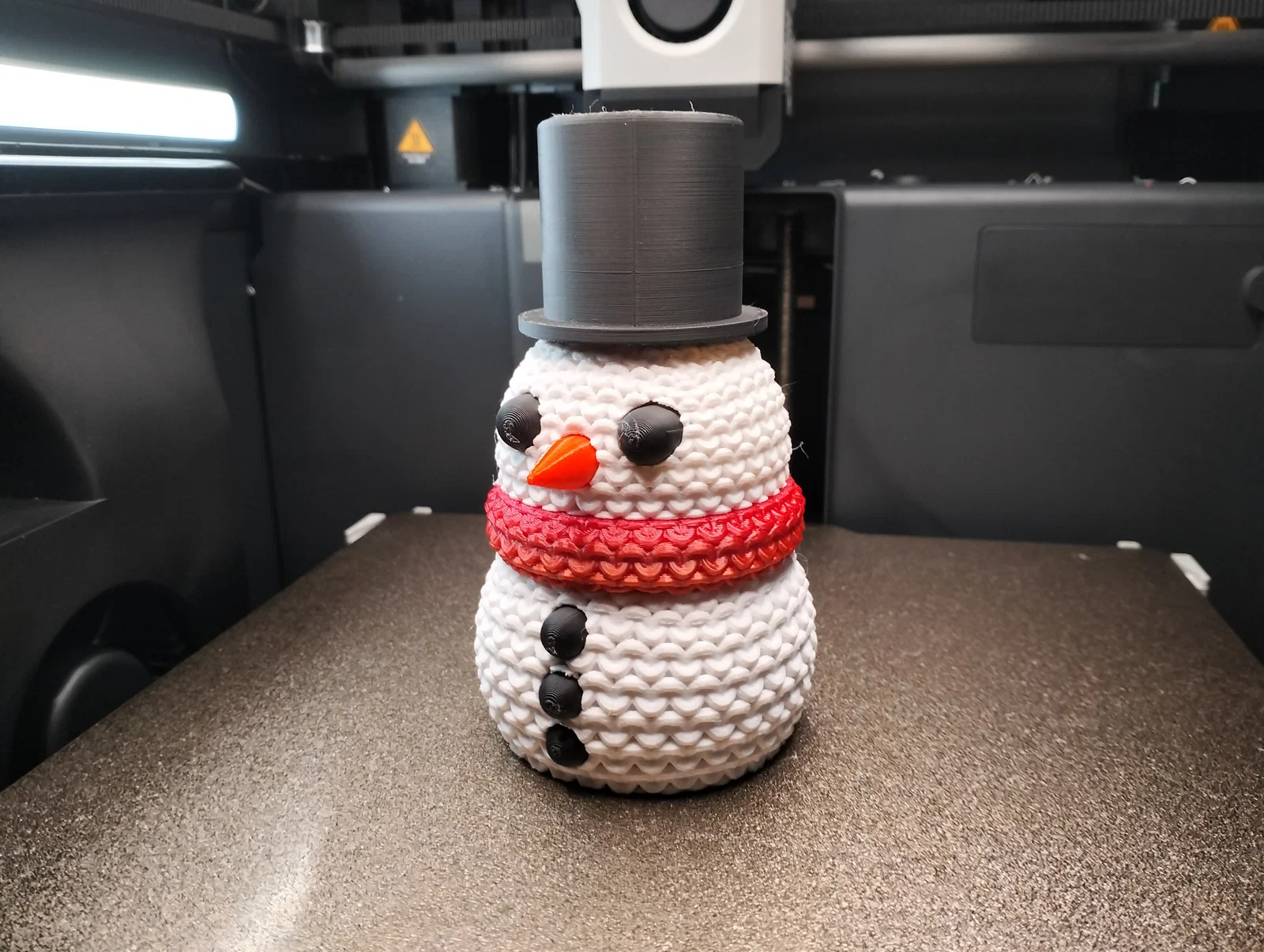 Mô hình đáng yêu này mô tả một chú người tuyết đan len, rất hoàn hảo để làm vật trang trí trong phòng. Người tuyết có bề mặt vân như những mũi đan thật, tạo cảm giác ấm cúng và thủ công. Với các chi tiết như chiếc mũ nhỏ và hàng cúc áo, mô hình này mang lại vẻ ngoài đầy ấm áp và cá tính.
