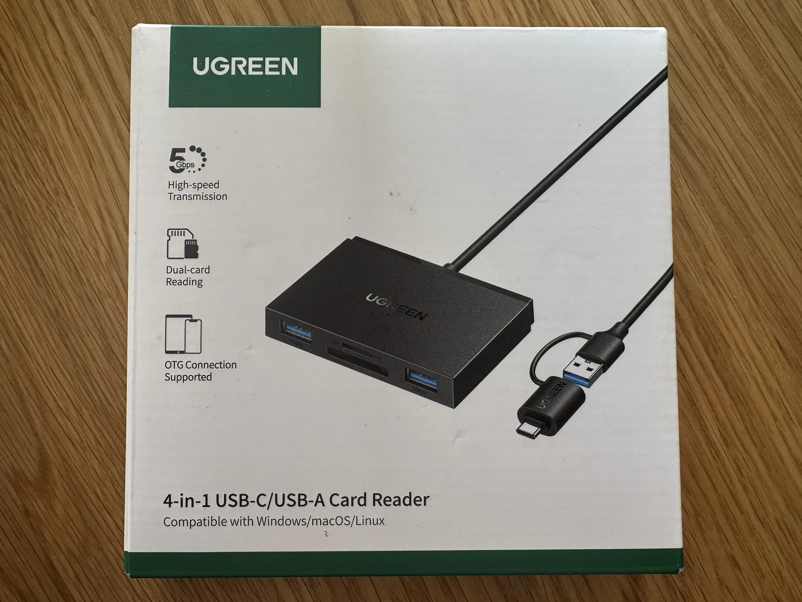 - Điều chỉnh cáp: Thay vì dùng cái đầu chuyển USB-C cồng kềnh đi kèm theo bộ đọc thẻ, mình dùng một sợi cáp USB-C sang USB-A OTG loại ngắn để nhìn cho gọn gàng hơn.