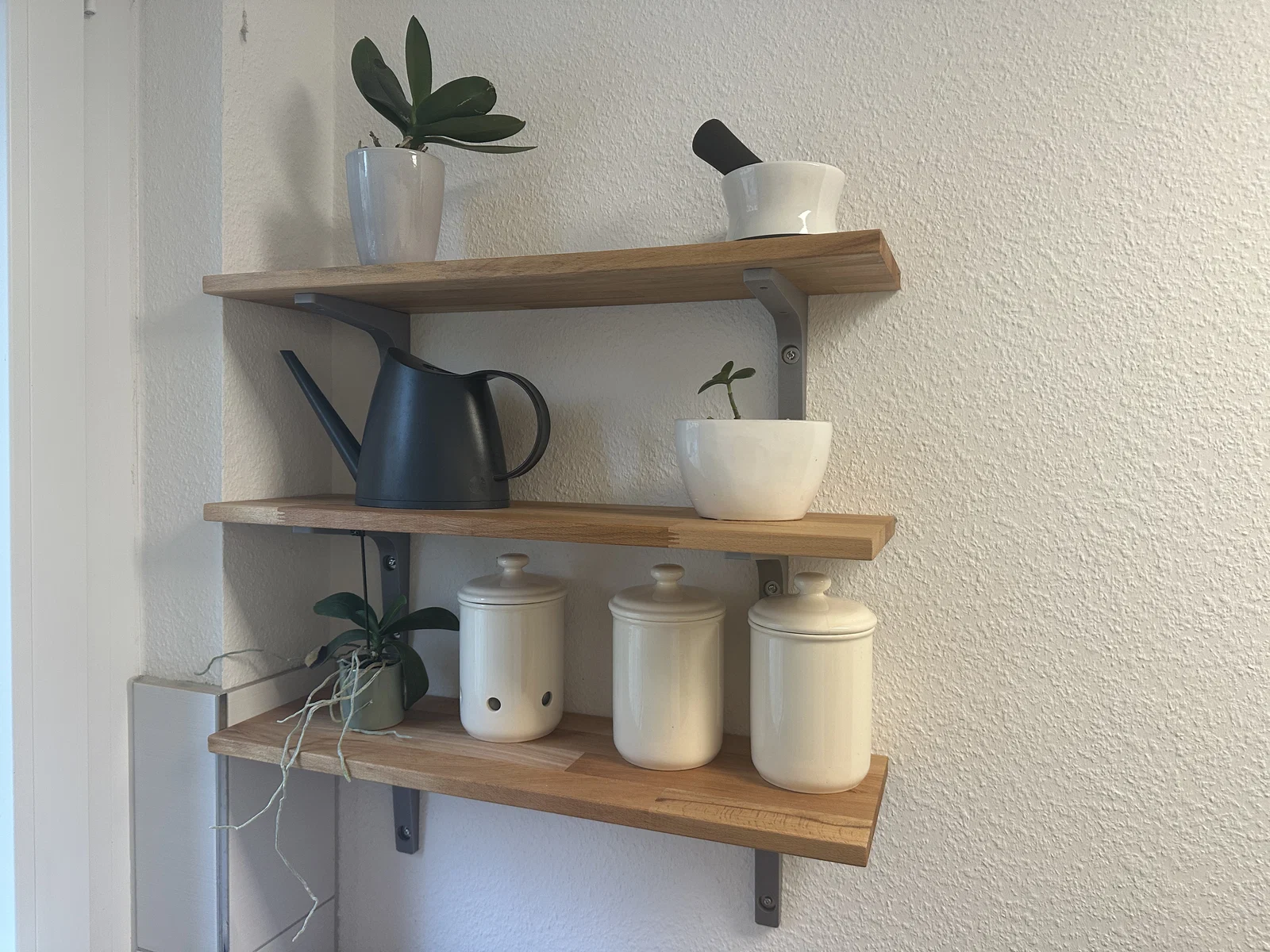 Phần giá đỡ này phù hợp để gắn các tấm kệ có chiều rộng 20 cm lên tường thạch cao. Bạn có thể sử dụng tắc kê loại M5 (cavity dowels) cho phần này. Nếu cần dùng tắc kê M6 lớn hơn, bạn có thể dễ dàng khoan mở rộng lỗ có sẵn.