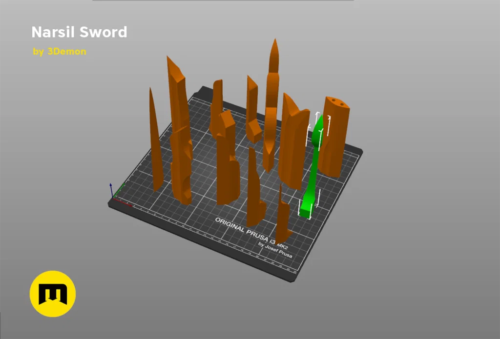 Khám phá bản sao kích thước thật của thanh kiếm Narsil huyền thoại từ The Lord of the Rings. Mô hình bao gồm 2 phiên bản nguyên vẹn và bị gãy, được tối ưu hóa để in 3D dễ dàng và sắc nét cho mọi tín đồ đam mê sưu tầm.