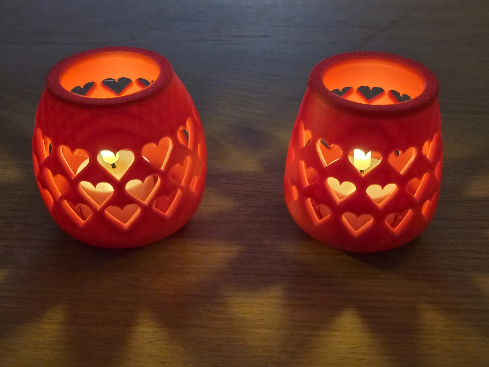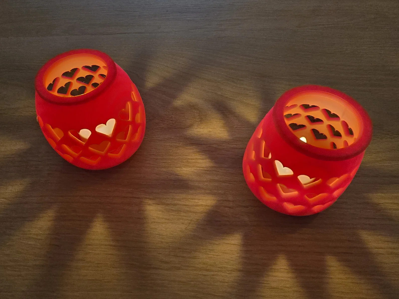 Bộ đôi đế nến tealight in 3D với họa tiết trái tim đầy lãng mạn. Sản phẩm gồm hai kiểu dáng, dễ in không cần support, tạo hiệu ứng ánh sáng đẹp mắt, cực kỳ phù hợp để trang trí cho các dịp lễ hội ấm cúng cùng nến LED 40mm.