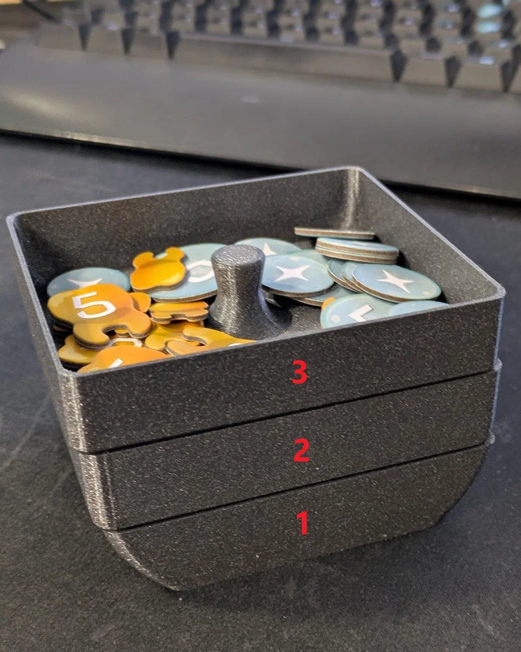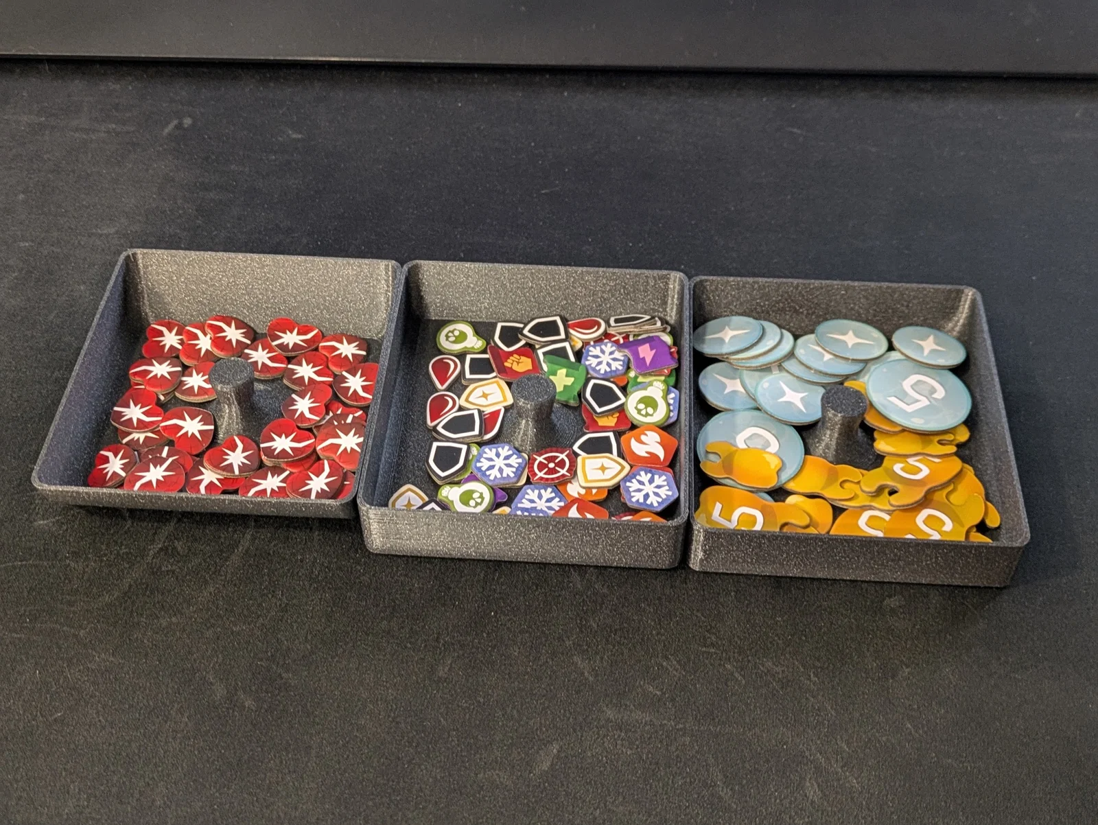 Bộ tổ chức gồm 3 phần để đựng tất cả các token trong game, bạn có thể dùng chúng như những chiếc cốc nhỏ trong khi chơi luôn!