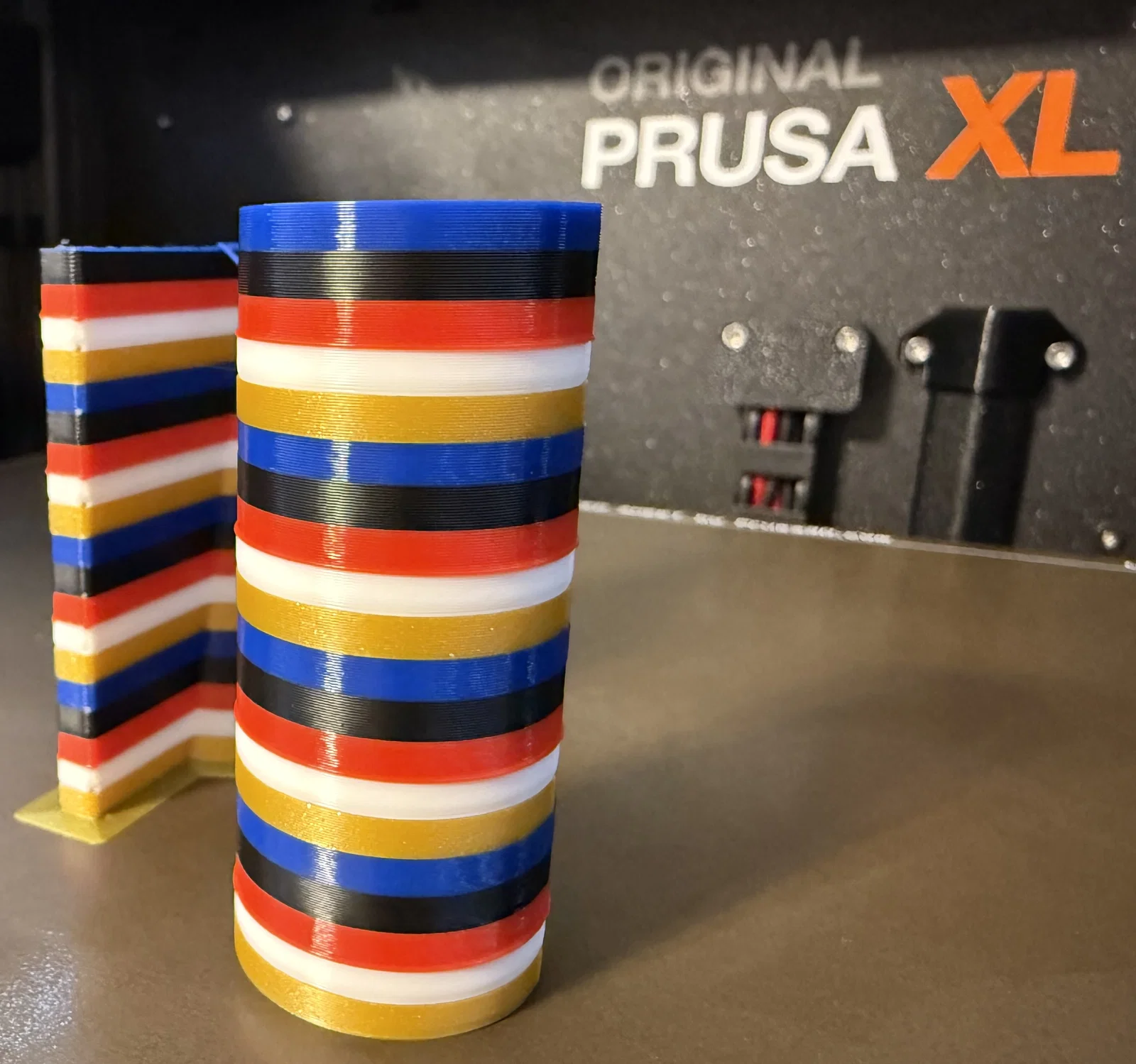 Bạn đang cần tìm cách kiểm tra lỗi cho máy in XL của mình và muốn dùng cả năm đầu in để thử nghiệm? Hãy thử dùng mô hình này. Mình tạo ra nó để kiểm tra xem các đầu in có đang hoạt động chính xác tại vị trí đã định lúc bắt đầu in hay không. Mình đã vô tình phát hiện ra rằng hiệu chuẩn Tool Offset Calibration bị lệch vài phần trăm milimet, điều này gây ảnh hưởng trực tiếp đến chất lượng bản in.