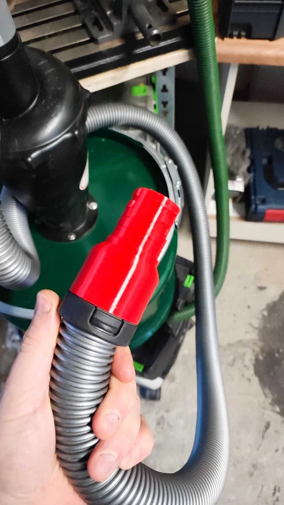 Trong xưởng, mình hay sử dụng nhiều loại máy hút bụi khác nhau cùng với thiết bị Festool, nên mình cần tự in các đầu chuyển đổi (adapter) cho phù hợp. Mình đã đăng tải cả file .f3d và .step để bạn có thể thoải mái chỉnh sửa tùy theo nhu cầu sử dụng của mình.