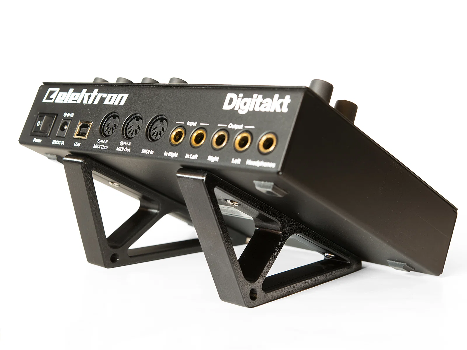 Bộ chân đế thiết kế gọn nhẹ giúp nâng cao chiếc Elektron Digitakt của bạn lên góc 25° hoặc 45° để thao tác thoải mái hơn. Sản phẩm sử dụng lỗ gắn VESA có sẵn, lắp đặt đơn giản và không cần hỗ trợ khi in.