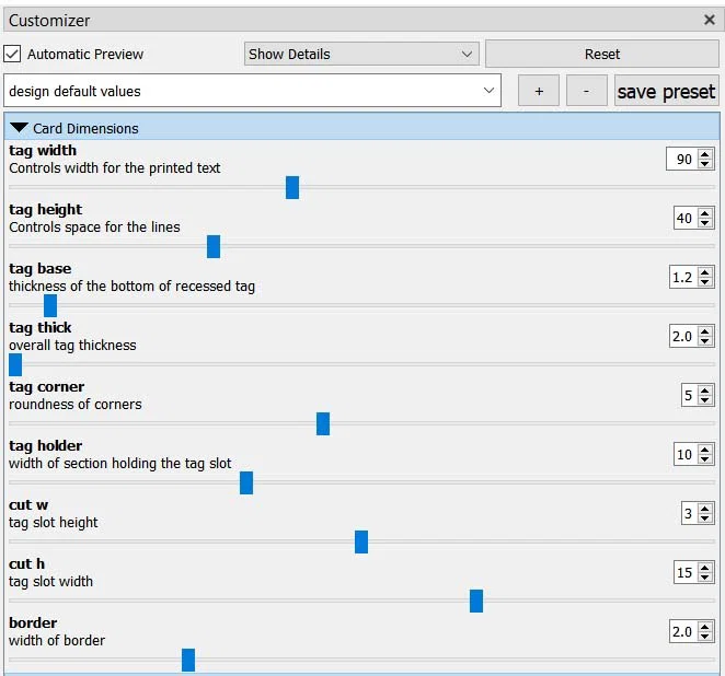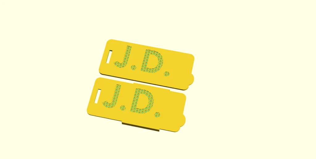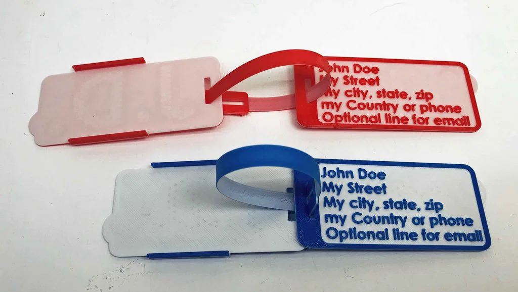 Đây là phiên bản remix của mẫu thẻ hành lý từ Thingiverse với nhiều cải tiến: thêm kẹp nắp, hỗ trợ chữ viết tắt, và tùy chọn in 2 màu sắc nét hơn. Hướng dẫn chi tiết cách dùng OpenSCAD và thông số in nhựa PETG/PLA đi kèm.