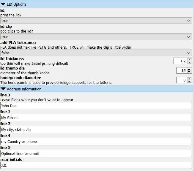 - Nếu in nắp có kẹp bằng PLA, hãy đặt "add PLA tolerance" thành true. Việc này sẽ giúp các kẹp cách xa nhau hơn một chút vì PLA cứng hơn.
