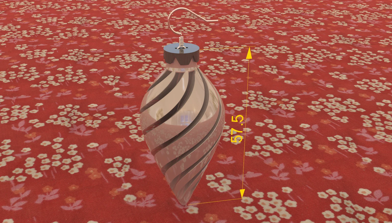 - Chiều cao tổng thể của vật thể là 57.5 mm, đây là kích thước lý tưởng cho bông tai, vừa đủ nổi bật mà không quá nặng khi đeo trên tai.