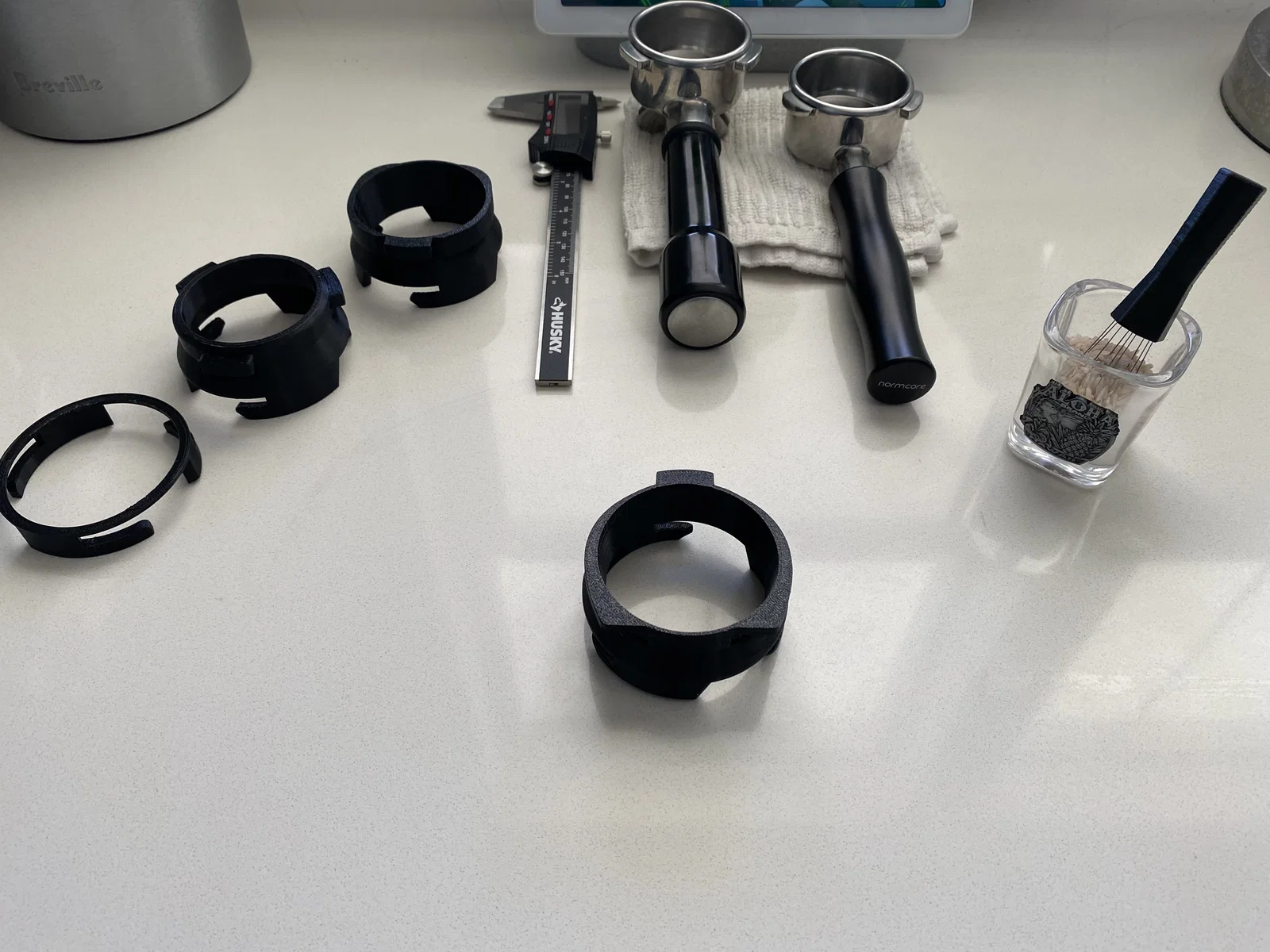 Bổ sung phiên bản Phễu rộng (Wide Funnel): Phiên bản này cho phép tamper 54mm của Breville đi lọt qua phễu. Tuy nhiên, phần gờ/vòng trong sẽ được thu nhỏ lại, có thể làm một ít bột cà phê bị rơi ra ngoài.