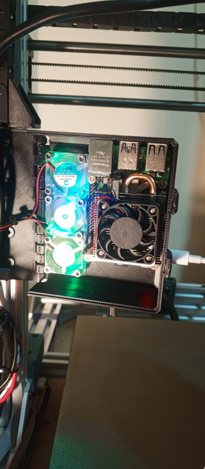Thiết kế này là một cái case nhỏ gọn và tiện lợi, dùng để chứa cả Raspberry Pi 4 lẫn bo mạch BTT SKR E3 Mini V3, có thêm không gian gắn quạt để giữ nhiệt độ ổn định. Case được thiết kế theo dạng print-in-place (in nguyên khối), nghĩa là bạn không cần phải lắp ráp gì sau khi in xong; các bộ phận đã khớp hoàn hảo ngay khi in ra, giúp việc tích hợp vào máy in 3D hoặc hệ thống CNC của bạn trở nên gọn gàng và chắc chắn. Thiết kế này cần sử dụng ốc chèn M3 để cố định chắc chắn, nhưng mình đã đính kèm file STEP để bạn dễ dàng chỉnh sửa tùy theo nhu cầu.