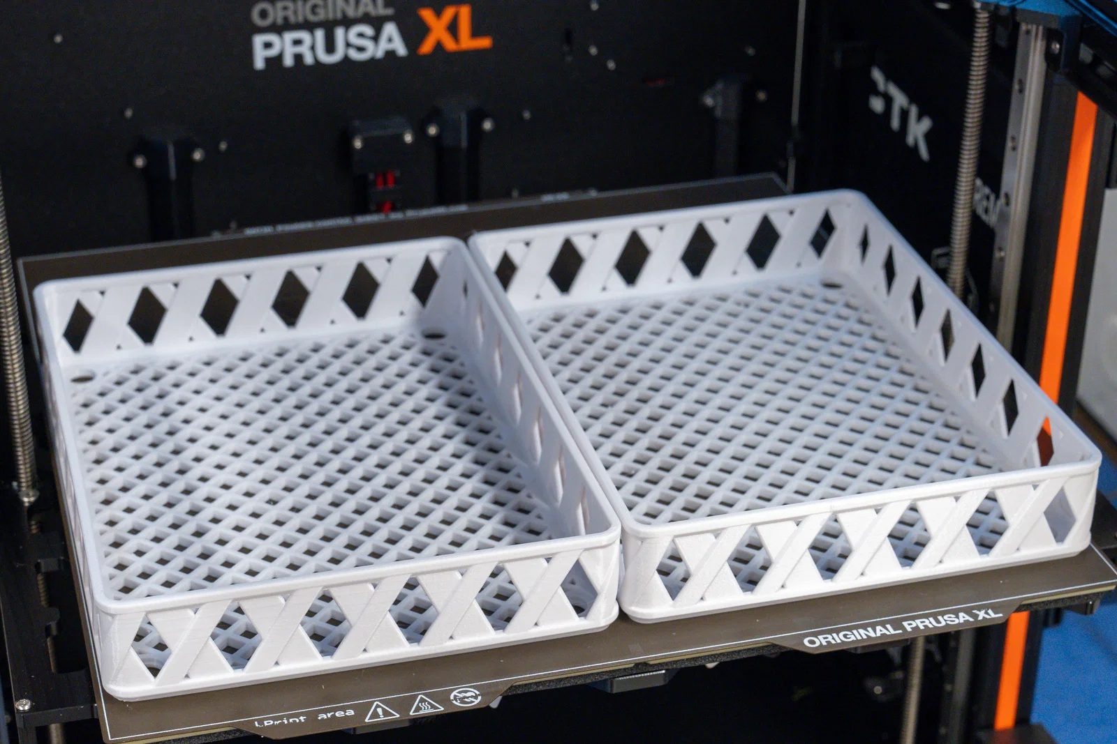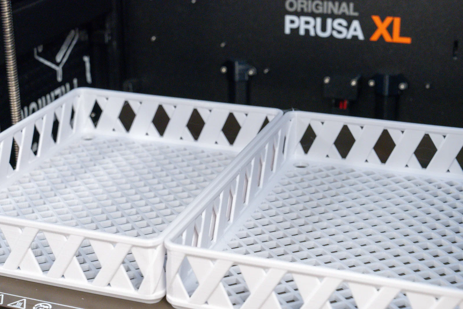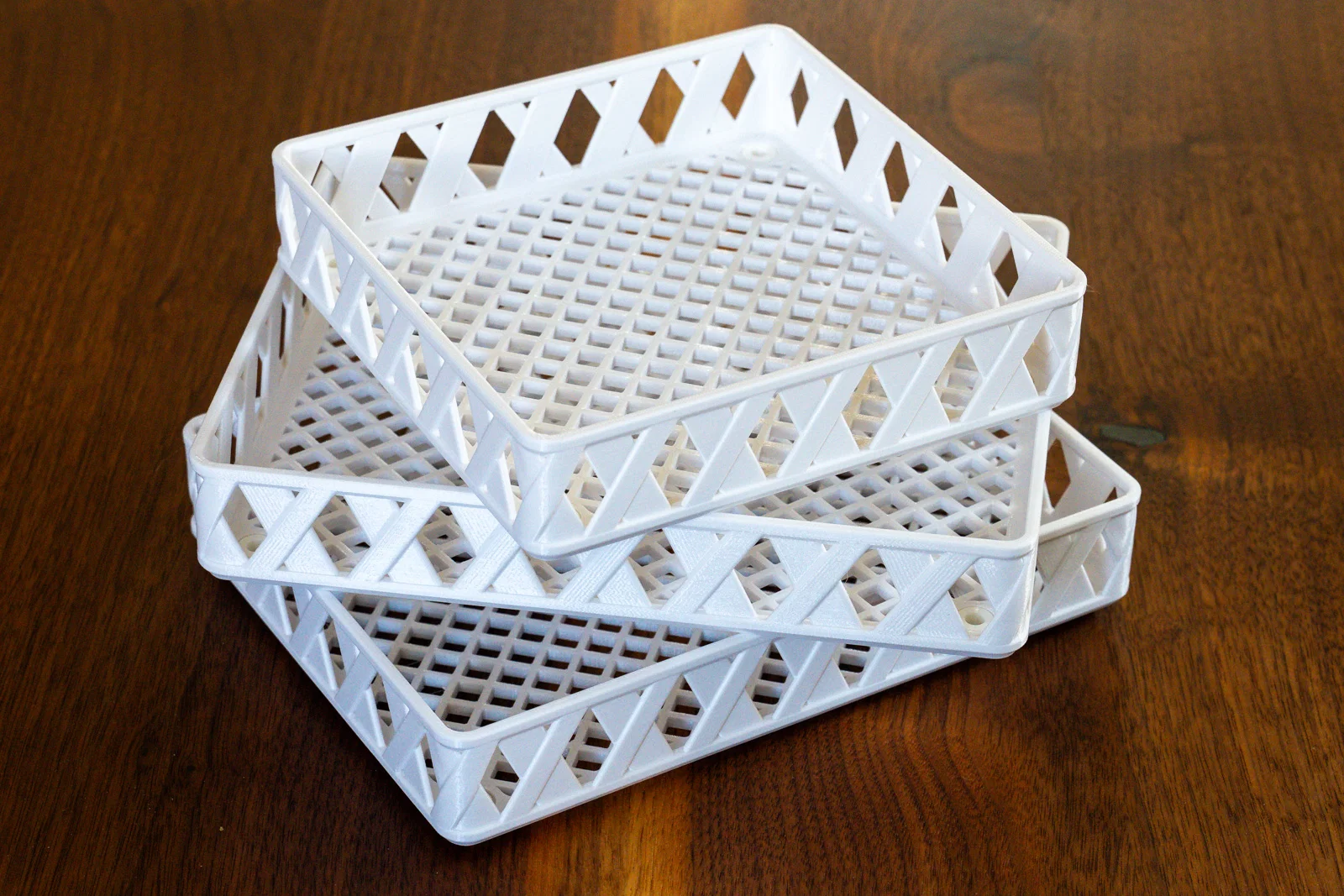Thiết kế này được tối ưu để in bằng PETG nhằm đảm bảo độ bền chắc, nhưng bạn vẫn có thể dùng PLA hoặc các loại nhựa khác. Ví dụ, phần đáy giỏ được làm dày (4 mm) để tạo độ cứng cáp cho cấu trúc lưới.