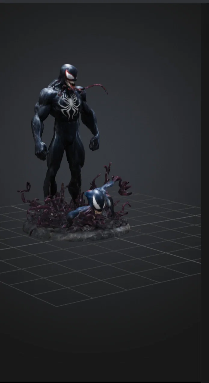• Chất liệu đề xuất: Nên dùng nhựa PLA hoặc Resin để có độ sắc nét tốt nhất cho các chi tiết nhỏ trên phần chân đế và cơ thể Venom.