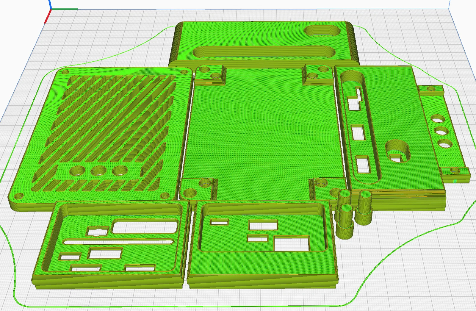 Tất cả các chi tiết khi đưa vào phần mềm slicer sẽ tự động nhận hướng in tối ưu (nếu không chắc chắn, bạn hãy xem hình minh họa). Bạn không cần dùng support nếu máy in của bạn bridge tốt. Bạn cũng đừng lo về các lỗ tròn hướng xuống dưới trên các mảnh bridge mặt trên/nút bấm, chúng đã được thiết kế để hỗ trợ bridge khi in. Nếu máy bạn bridge chưa tốt thì cứ dùng support thoải mái nhé.