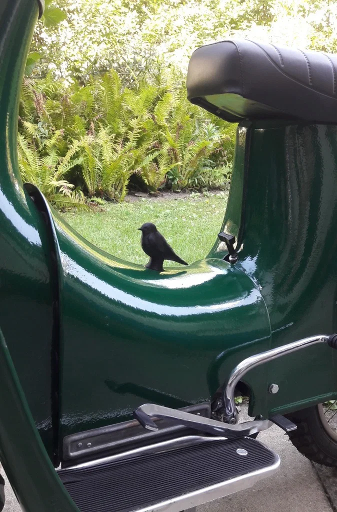 Một đàn chim én nhỏ dùng để trang trí cho chiếc xe máy Simson Schwalbe KR51.