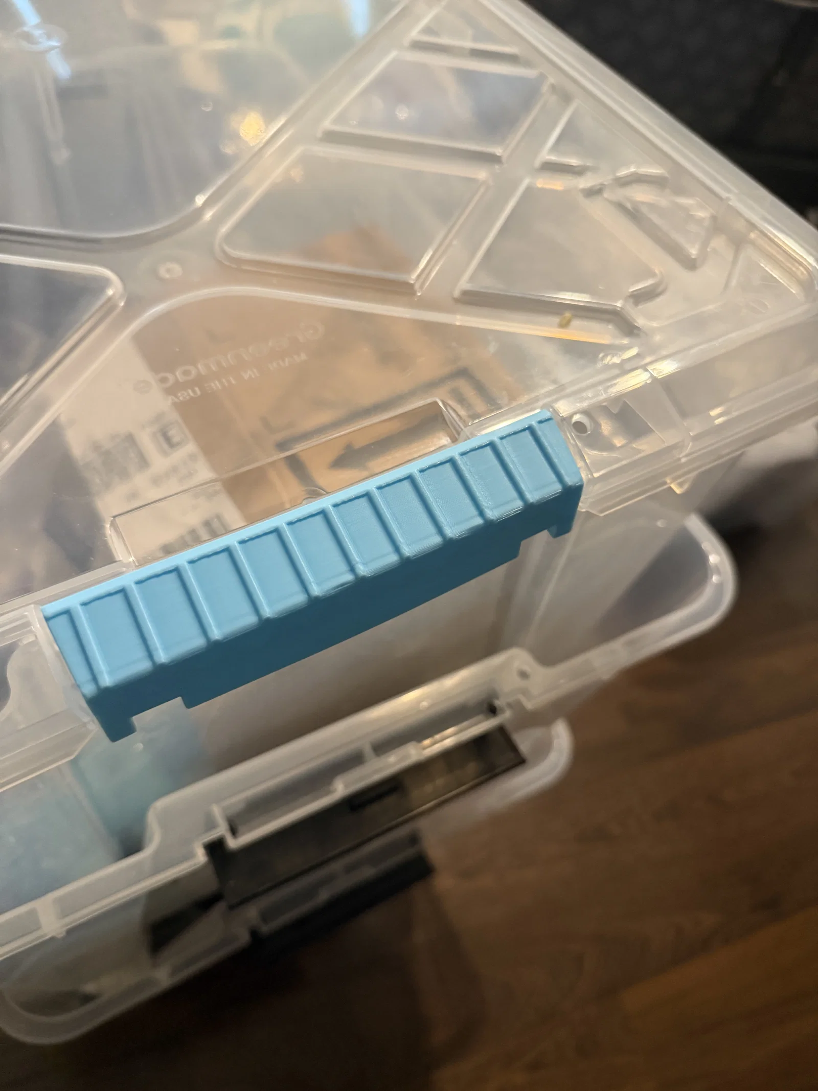 Nếu bạn đang sở hữu những chiếc thùng nhựa lưu trữ Greenmade InstaView 45 Qt mua từ Costco và chẳng may bị gãy tay cầm khóa, đừng vội bỏ đi cả chiếc thùng. File thiết kế 3D này là giải pháp thay thế hoàn hảo, giúp bạn phục hồi công năng sử dụng cho thùng chỉ trong vài giờ in ấn. Tay cầm được thiết kế mô phỏng chính xác hình dáng và cơ chế khớp nối của bản gốc, giúp việc đóng mở nắp thùng trở nên dễ dàng và chắc chắn như lúc mới mua.