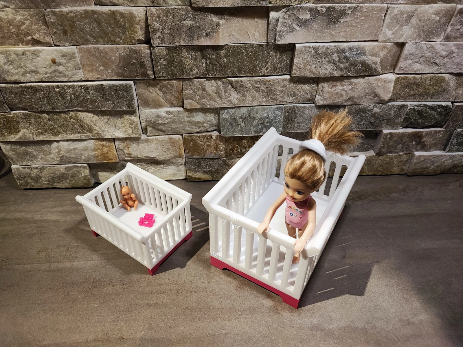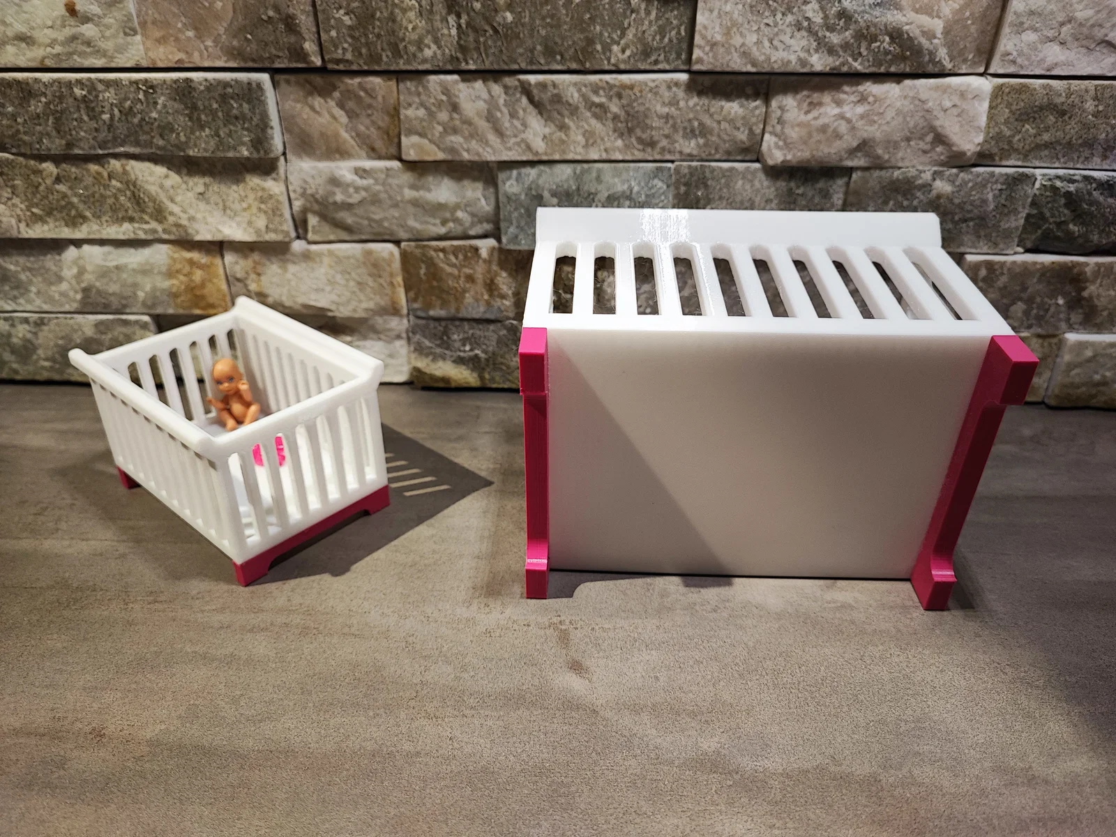 Mình đã thiết kế một chiếc cũi xinh xắn dành cho các bé búp bê nhỏ hoặc mô hình em bé. Phần hai chân đế của cũi cần được gắn lại bằng keo để đảm bảo chắc chắn khi sử dụng cho mô hình của bạn.