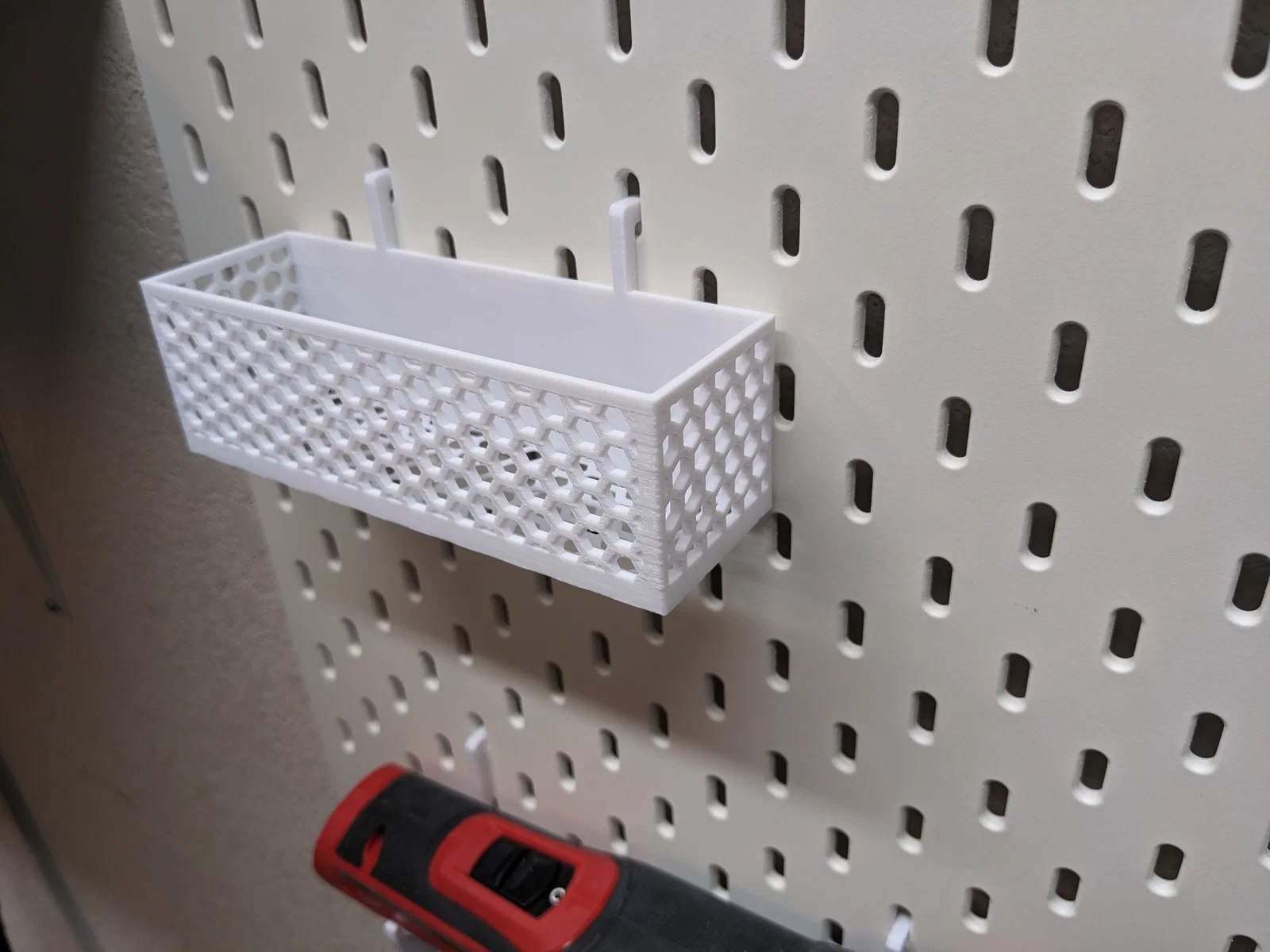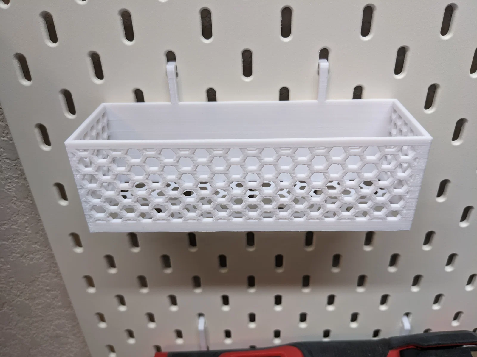 Đây là bản remix khay Skadis của Oisin. Mình rất thích tùy chọn thiết kế hở để tiết kiệm nhựa, nhưng lại không ưng việc phải in quá nhiều phần support. Để khắc phục vấn đề này, mình đã thêm họa tiết hình lục giác (hex pattern) vào các mặt ngoài của khay. Vẫn cần dùng support cho phần móc treo, nhưng thiết kế này giúp giảm đáng kể số lượng support so với bản gốc. File STL đính kèm được làm vừa khít với hộp mũi khoan Dewalt của mình. Nếu bạn muốn tùy chỉnh kích thước, hãy sử dụng file SCAD đi kèm nhé.
