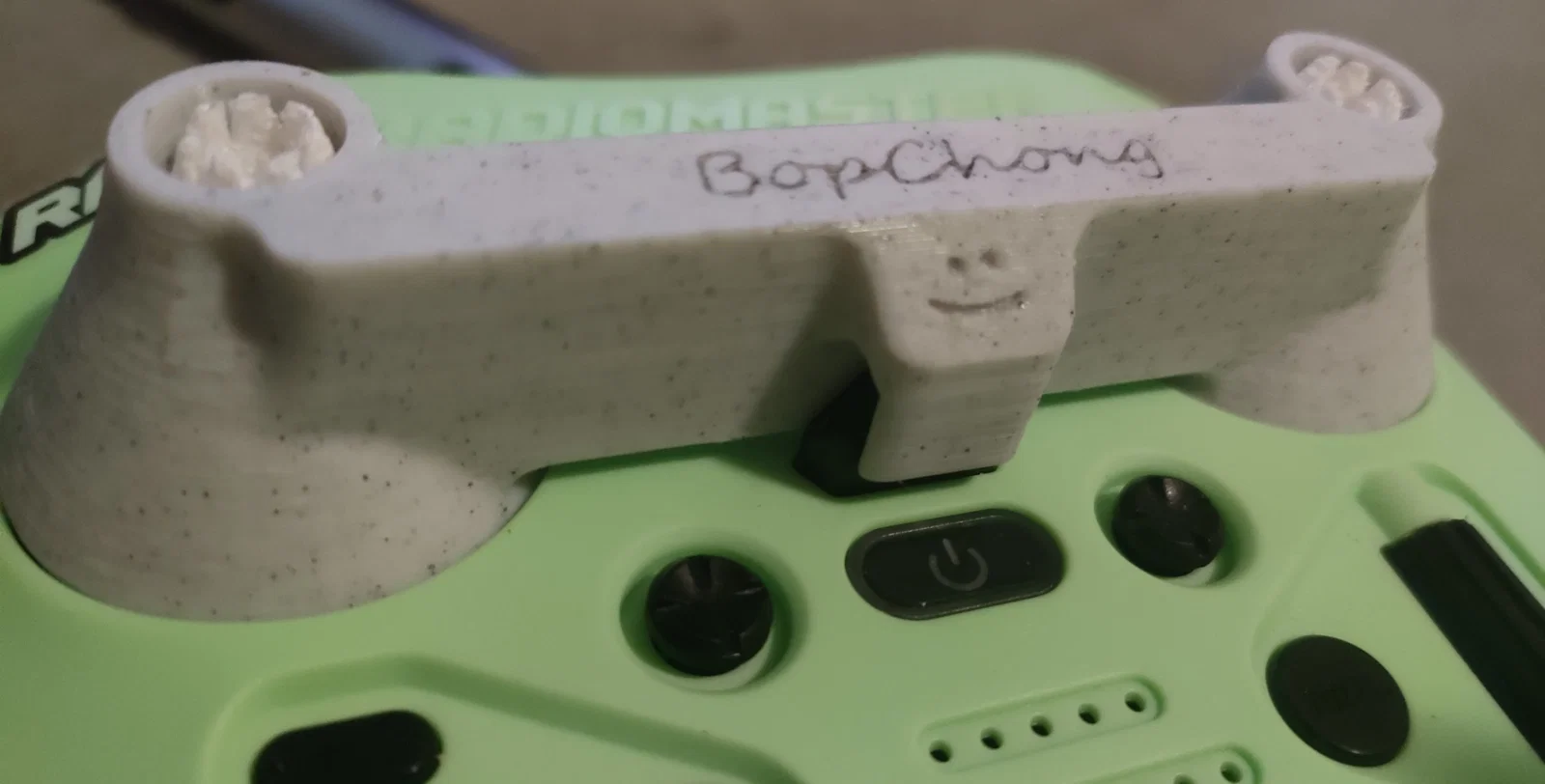 Đây là bản remix để phù hợp với stick của mình - kích thước 24mm x 10mm - đã tăng chiều cao thêm 3.5mm và tăng kích thước lỗ thêm 2.2mm. Thanh ngang được làm rộng ra để có thêm không gian dập nổi văn bản. Đã thêm bo tròn (fillet) vào bên trong móc để tăng độ bền. Thêm vát cạnh (chamfer) ở bề mặt đáy và bo tròn lại các phần còn lại để in ra trông mượt mà hơn.