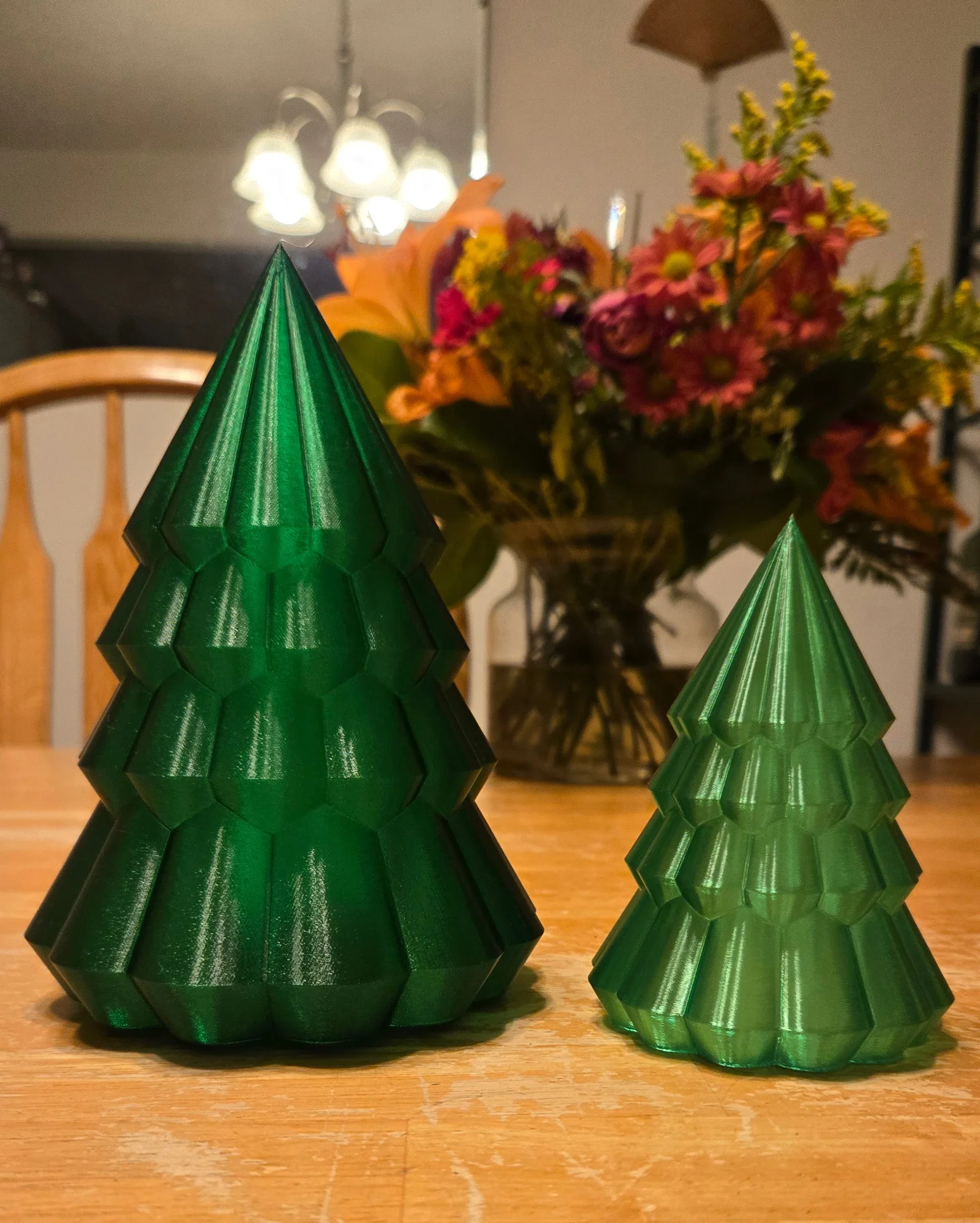 Đây là mẫu cây thông Noel bo tròn khác mà mình đã thiết kế bằng Fusion 360. Mẫu này có 4 tầng với các đường bo tròn. Mình có chia ra cả phiên bản lớn và nhỏ, với phần đế được thiết kế lỗ khoét 40mm để đặt đèn LED nến (tea light) cùng khay đỡ.