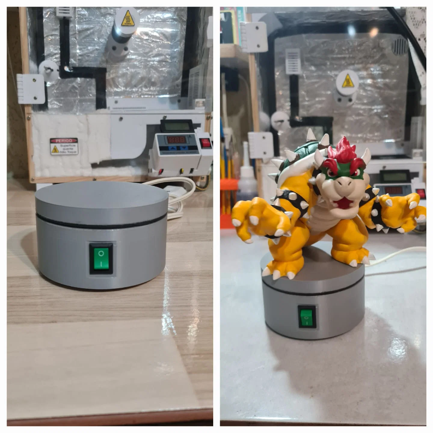 Với chiếc Đế xoay (Swivel base) này, bạn có thể trưng bày những món đồ mình yêu thích hoặc quay video sản phẩm 360 độ cực xịn. Thiết kế này rất đơn giản, dễ lắp ráp mà không cần dùng đến Arduino hay các mạch điện phức tạp. Bạn sẽ cần chuẩn bị một mô-tơ xoay khay lò vi sóng, một nút công tắc bật/tắt, dây cắm điện, một miếng xốp EVA, keo dán, mỡ bôi trơn và in 3 phần của đế. Chỉ cần làm theo các hướng dẫn trong file gif bên trên là xong.