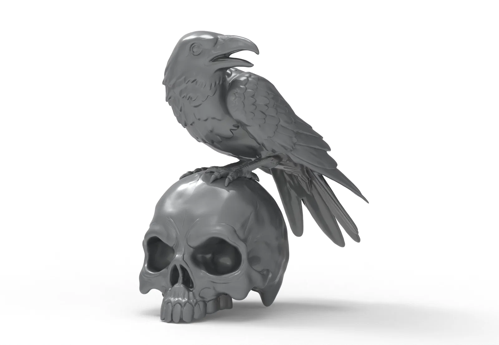 Đây là mô hình một con quạ đang đậu trên hộp sọ người, phần hàm dưới đã bị mất. Con quạ được thiết kế tỉ mỉ, chi tiết đang đậu ngay trên đỉnh hộp sọ.