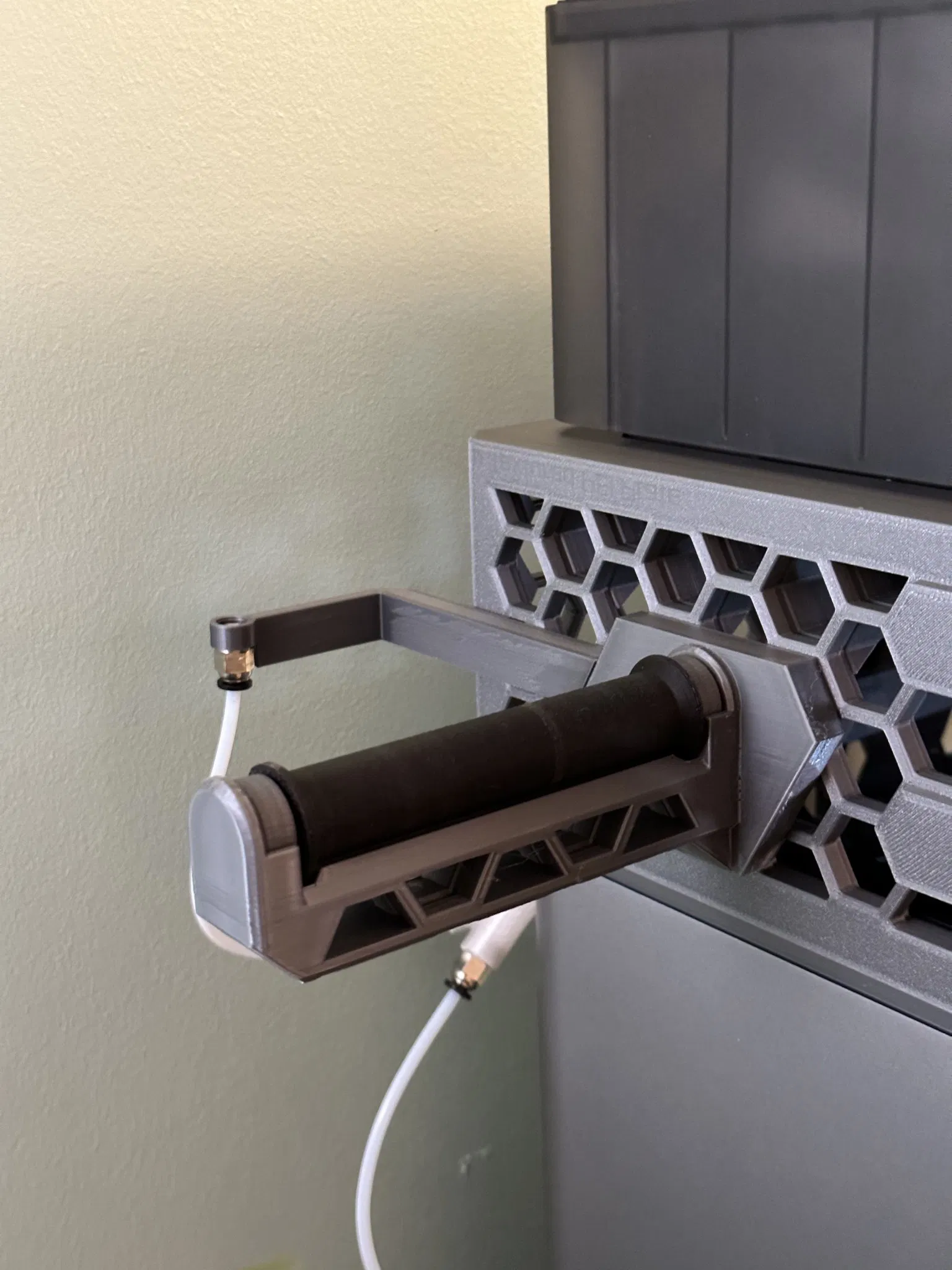Có hướng dẫn PTFE cho giá đỡ cuộn là một ý tưởng tuyệt vời nhưng sau khi in phiên bản remix gốc của Chiu Kang, tôi nhận thấy nó không phù hợp với bất kỳ cuộn nào của tôi. Tôi thích thiết kế này đến mức đã quyết định remix lại cho các cuộn nhỏ hơn, giữ lại hướng dẫn ống PTFE.