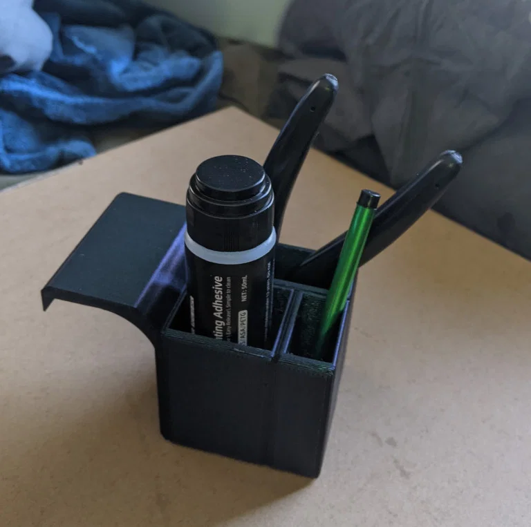 Đây là một giá treo dụng cụ đơn giản có thể lắp đặt ở bất kỳ bên nào của máy in Flashforge Adventurer 5M Pro. Thiết kế này có các khe ở phía trước để cất keo dán, bút stylus, v.v., và một khe phía sau dành cho kềm cắt dây hoặc các dụng cụ tương tự. Tôi đã chuẩn bị sẵn các file để bạn có thể lắp ở cả bên trái hoặc bên phải tùy ý. Bạn nên in mô hình ở tư thế nằm nghiêng, với các khe cắm keo và bút hướng xuống dưới để bề mặt tay cầm và phần đối diện người dùng đạt độ mịn tối đa (với điều kiện lớp đáy của bạn in ra đạt chất lượng tốt).