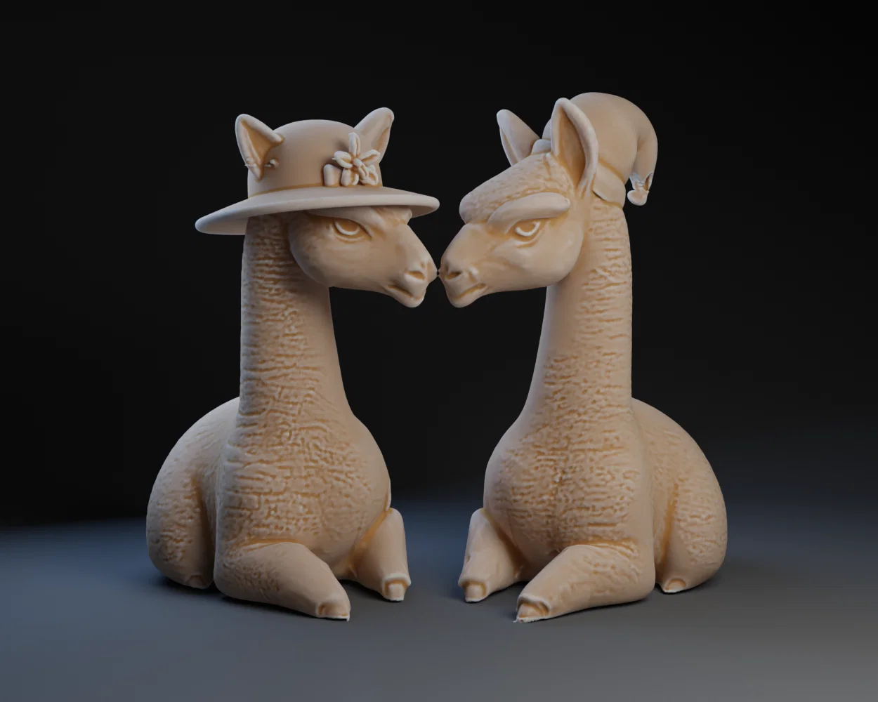 Độ chi tiết của mô hình được thể hiện rất rõ qua những đường nét lông của lạc đà và cấu trúc chiếc mũ được tạo hình khéo léo. Bạn có thể in nguyên bản bằng nhựa đơn sắc rồi dùng sơn acrylic để tô màu sống động, hoặc in bằng nhựa nhiều màu nếu máy in của bạn hỗ trợ. Sự kết hợp giữa tính thẩm mỹ và độ bền của nhựa in 3D giúp bộ đôi này trở thành món đồ chơi trưng bày (figurine) cực kỳ ấn tượng trong bộ sưu tập cá nhân của bạn.