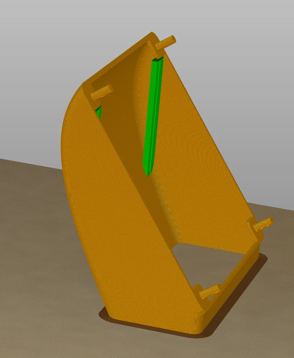 Nếu bạn in với phần miệng hướng xuống dưới, bạn chỉ cần một ít support là đủ, loại này tháo rất dễ và không làm trầy bề mặt bên trong. Có lẽ bạn sẽ cần dùng thêm brim, tôi đã thử với brim 5mm và thấy rất ổn. Bạn có thể xem thêm hình ảnh chụp từ phần mềm slicer mà tôi đã đính kèm.